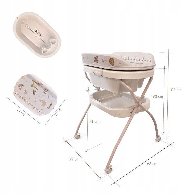 Neno Breza - ванна та стіл, що змінюється, - це рішення, яке забезпечує комфорт для дітей та батьків. Продумана формула 2in1 з достатньо високою рамою усуває необхідність нахилу, завдяки чому опікун не повинен напружувати спину. Щоденний догляд також сприяє мобільній конструкції із заблокованими колесами, стоком з трубкою та практичною полицею для рушників, іграшок або косметики.