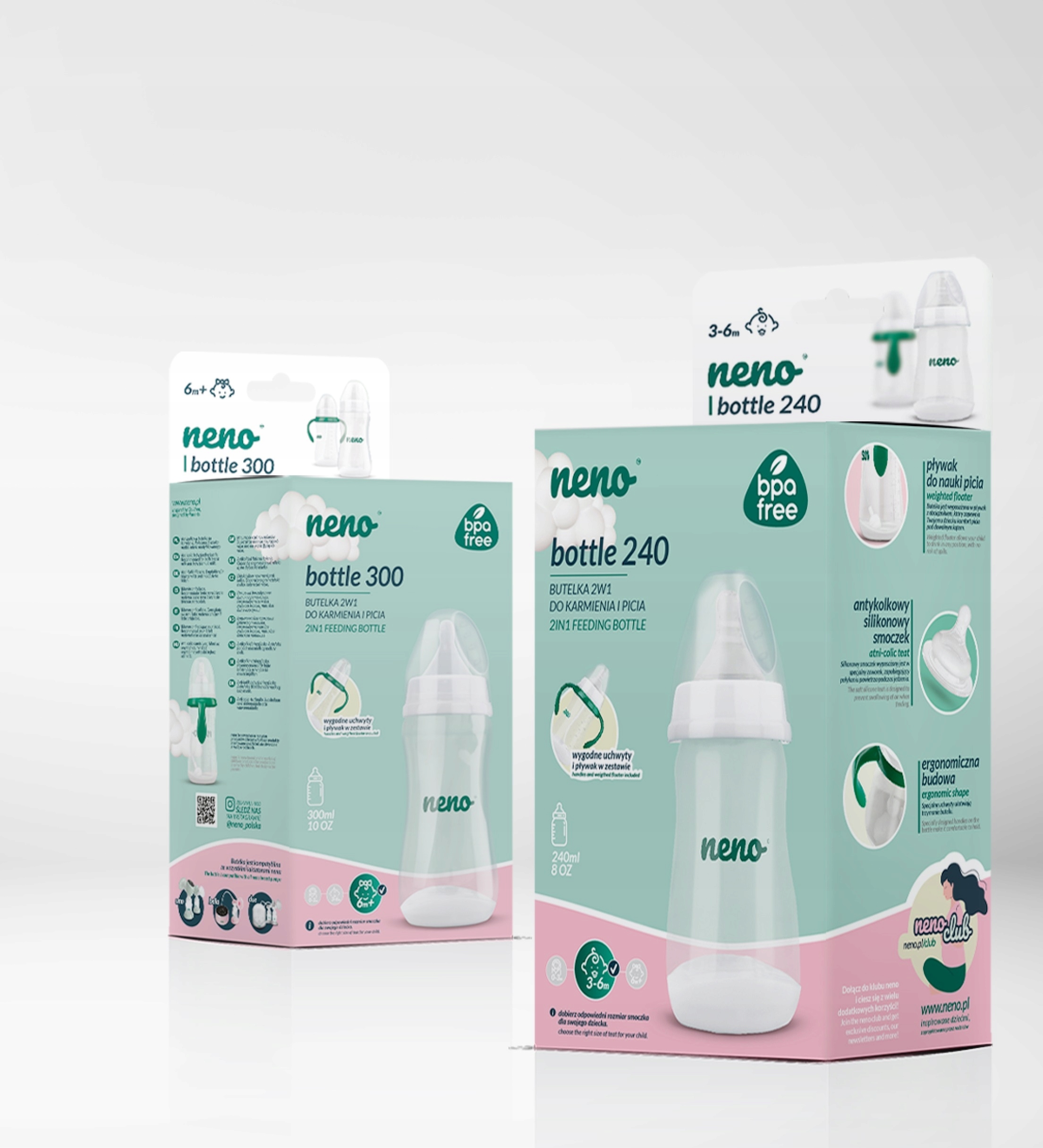 Ми розробили пляшку Neno 240 мл для багатозадачності. Він підходить не тільки для дачі молока, але також ідеально підходить для навчання пити воду або чай. Пляшечка 240 мл призначена для дітей віком від 3 місяців.
