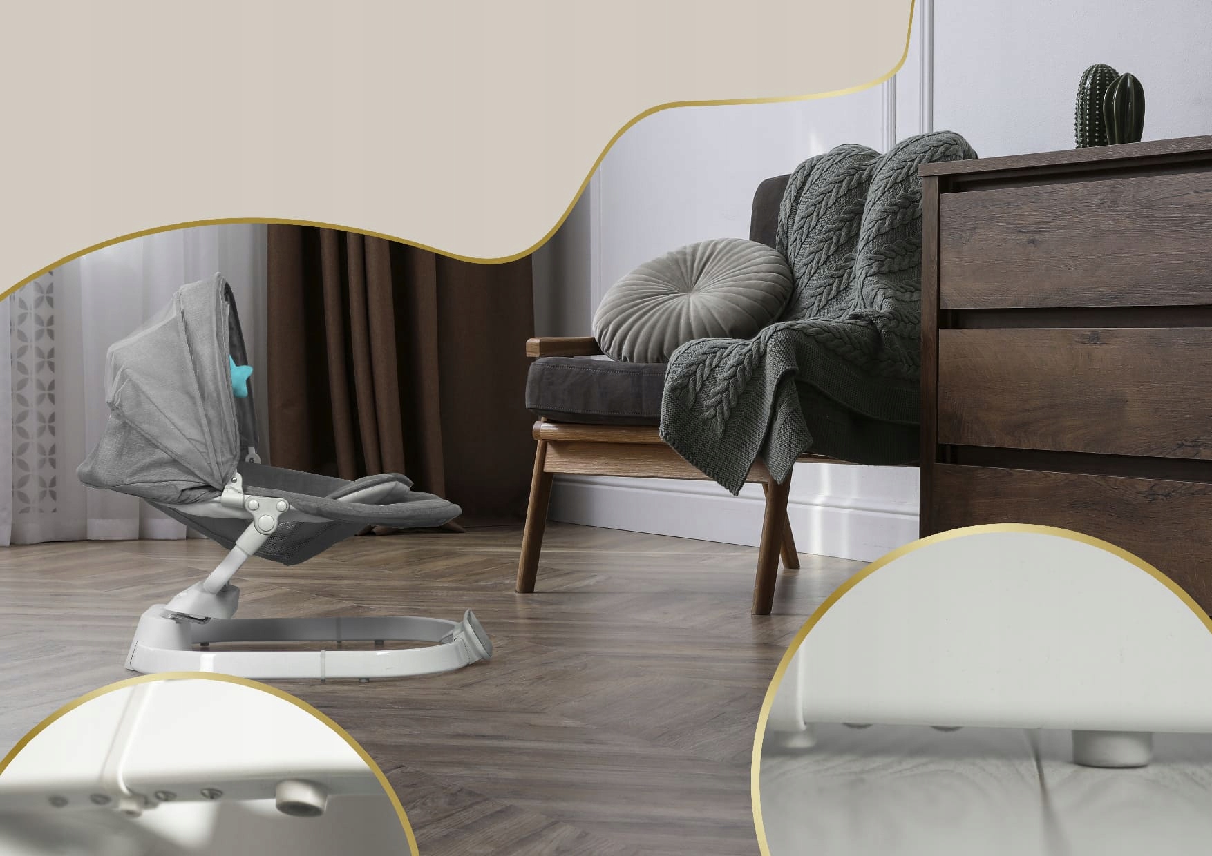 Наша команда дизайнерів обрала матеріали найвищої якості, працюючи над Neno Nube. Ваша дитина буде насолоджуватися надзвичайною м'якістю обраного нами оксамиту. Чохол качалки в нейтральному, сірому кольорі ідеально вписується в дизайн сучасних і мінімалістичних інтер'єрів.