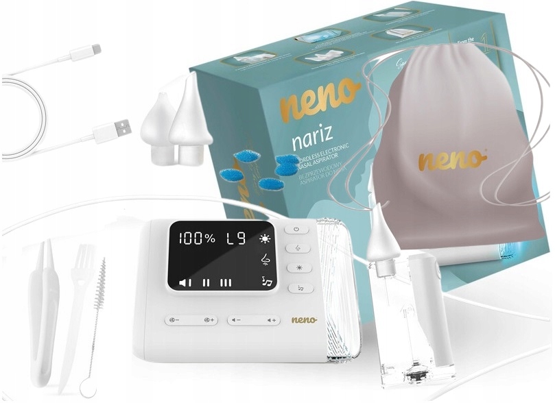 Neno Nariz - це бездротовий аспіратор, який завдяки функції активного потоку повітря ефективно визначає секрецію з носової порожнини та важких частин верхніх дихальних шляхів. Завдяки 9-ступінчастому регуляції силової сили, стерилізуюча УФ-лампа та світлодіодна підсвічування гарантують максимальну гігієну та точність.