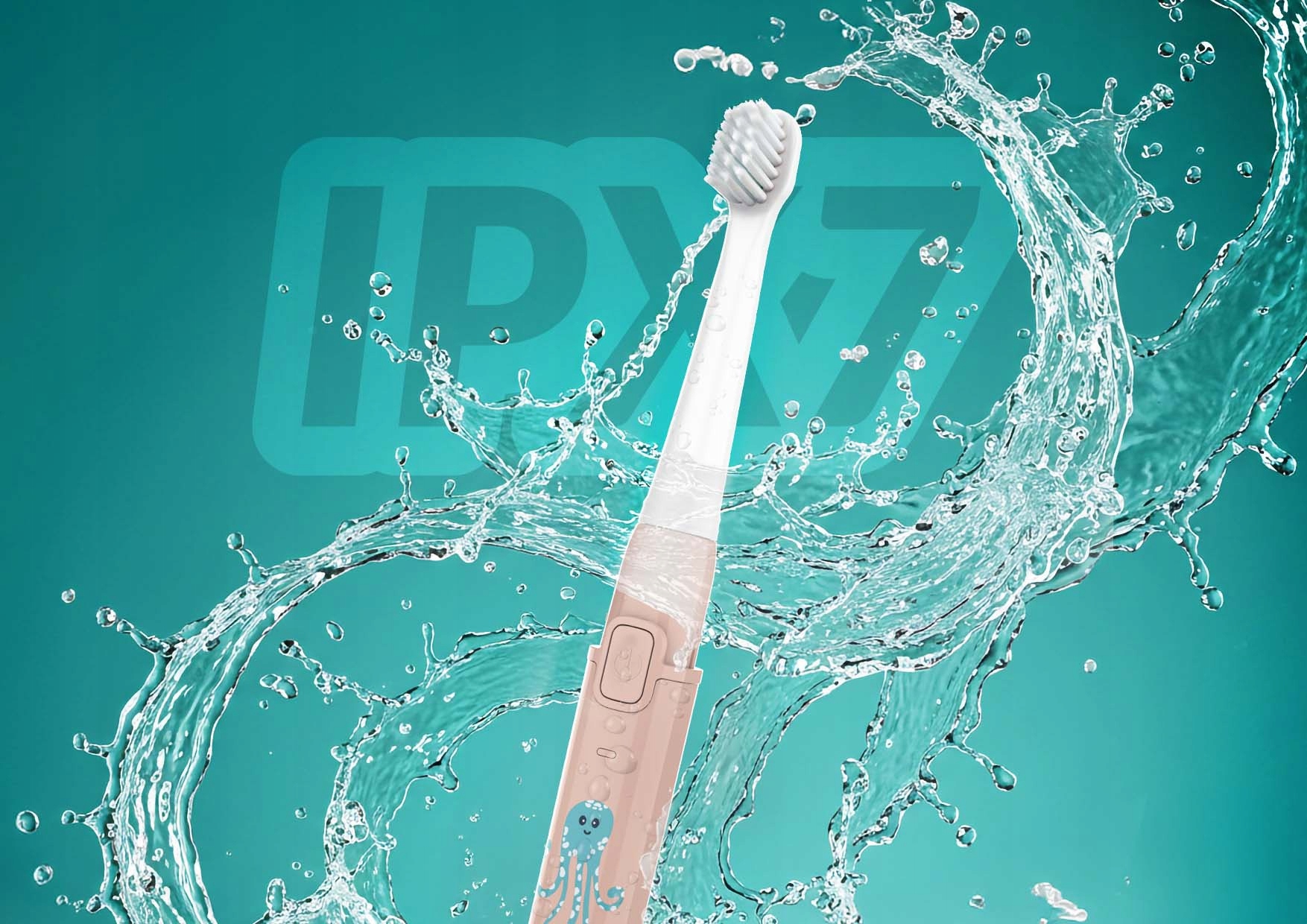 Завдяки високому рейтингу водонепроникності IPX7 Pulito ідеально підходить для використання у вологих ванних кімнатах, забезпечуючи повну безпеку навіть у разі випадкового занурення або бризок. Міцна і водостійка конструкція дозволяє дитині вільно використовувати його біля раковини, не боячись пошкодити пристрій. Це практичне рішення, яке збільшує довговічність зубної щітки та комфорт її використання.