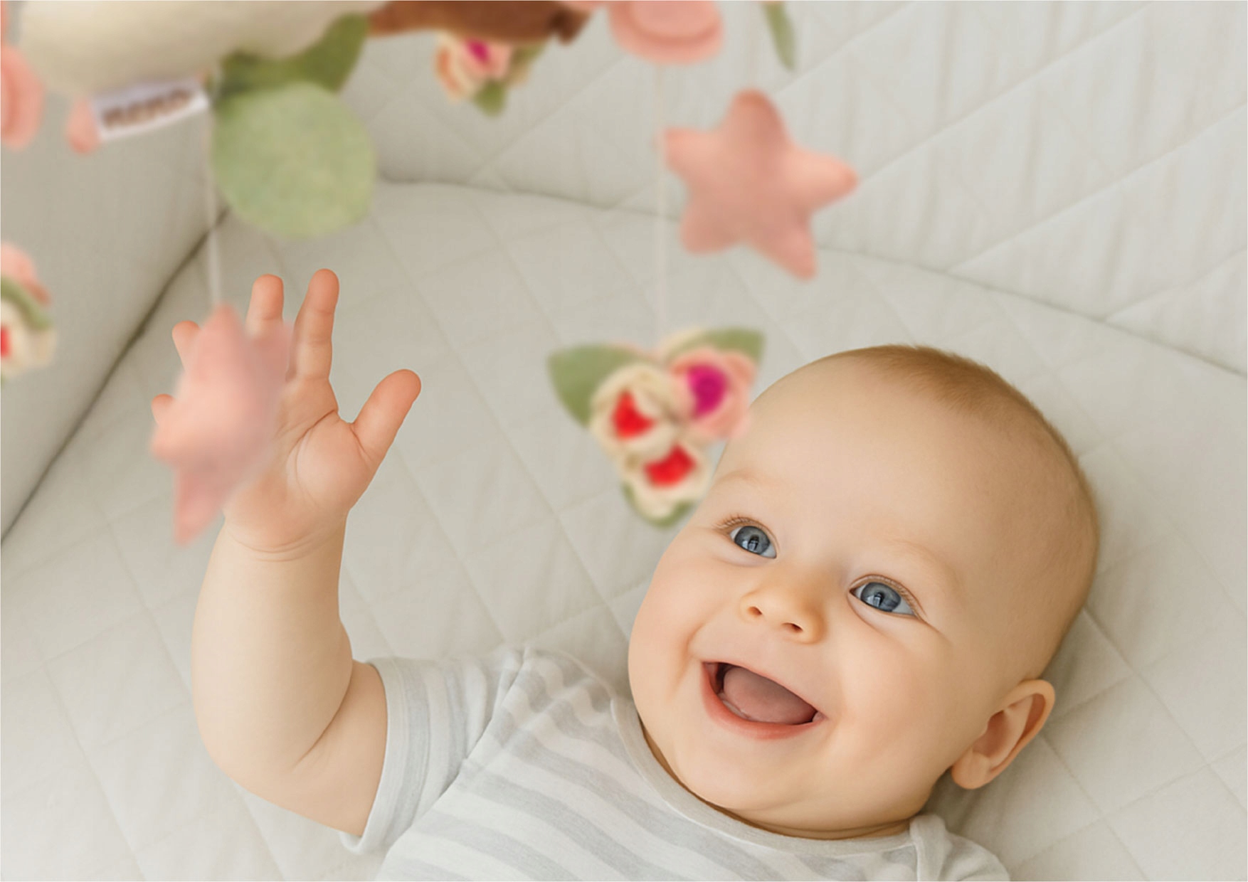 Талісмани, що ширяють у повітрі, заохочують вашу дитину вперше спробувати витягнути руки. Ці дрібні рухи підтримують координацію і стають початком природної рухової активності.