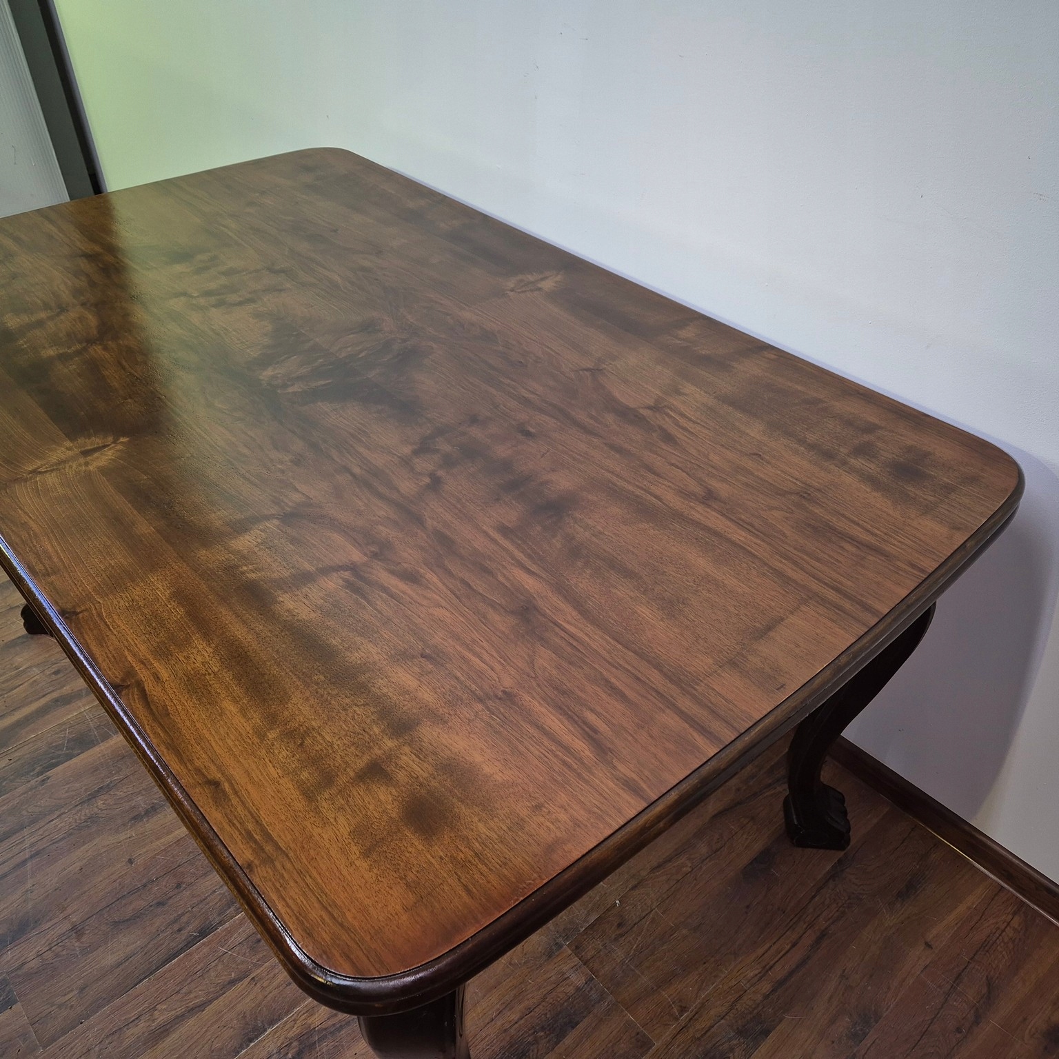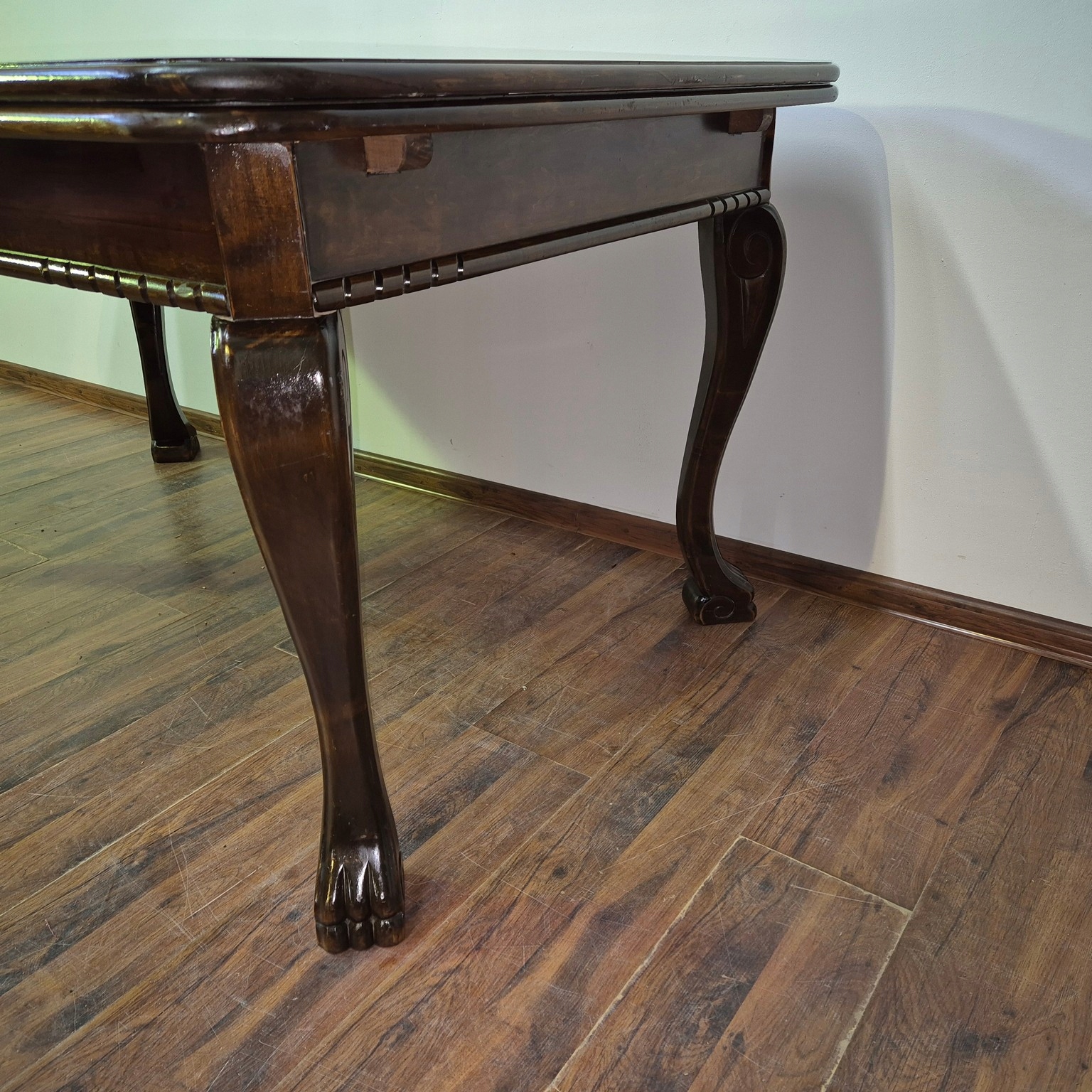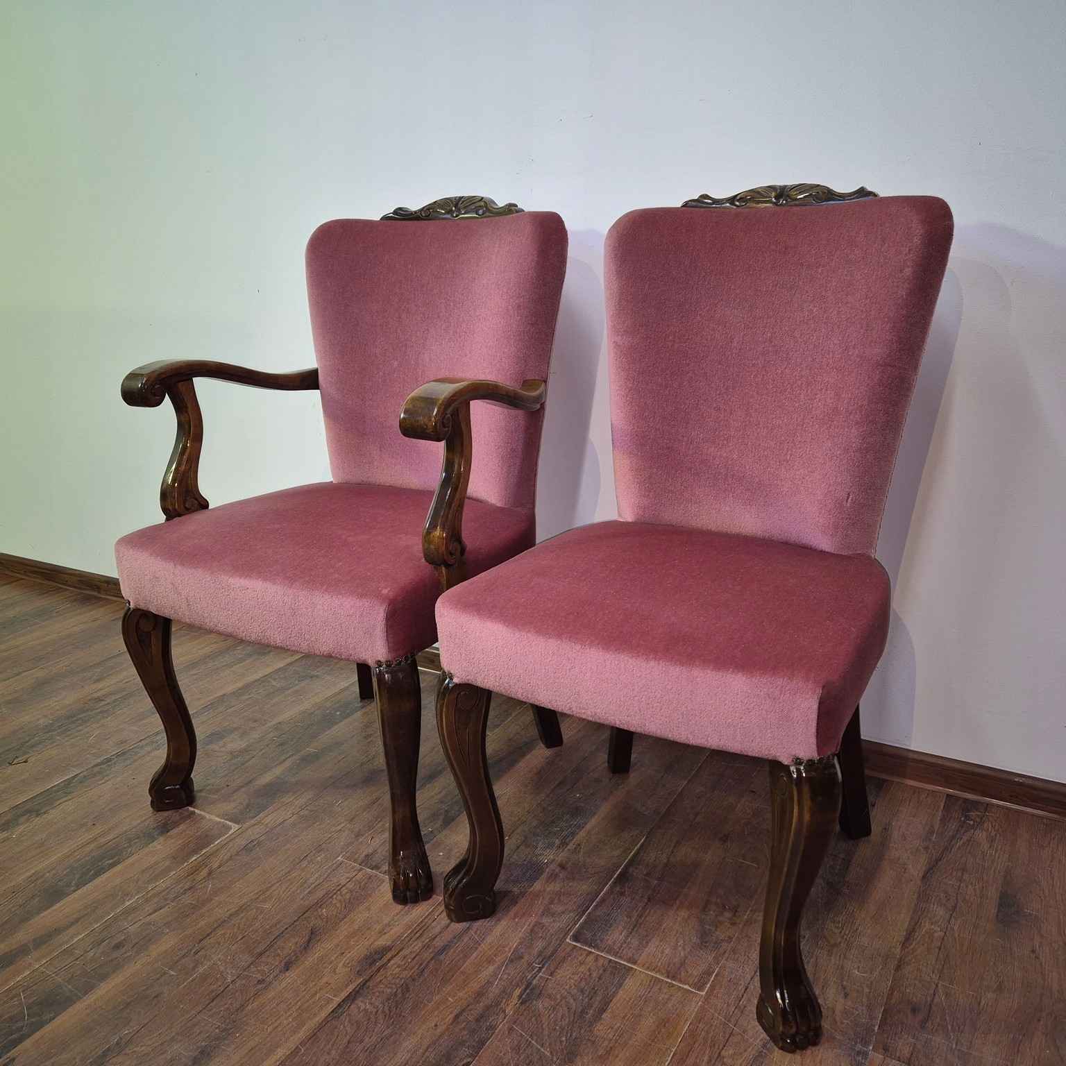 Прекрасний набір левів Леви дуже масивні. Складний таблиця. 4 стільці та 2fotels. Куплет, виготовлений з горіхової деревини. Країна походження Франція. Стабільні стільці, сидіння пружин, велюровий оббитковий матеріал