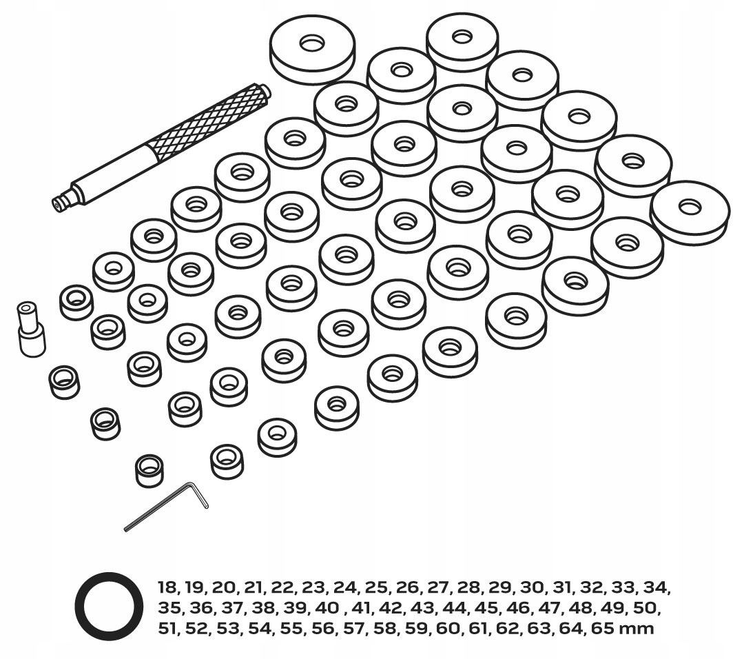 - 48 Робочі таблички: 18, 19, 20, 21, 22, 23, 24, 25, 26, 28, 28, 29, 30, 31, 32, 33, 34, 35, 36, 37, 38, 39, 40, 41, 42, 43, 44, 45, 46, 47, 48, 49, 50, 51, 52, 53, 55, 55, 5 62, 63, 64, 65 мм