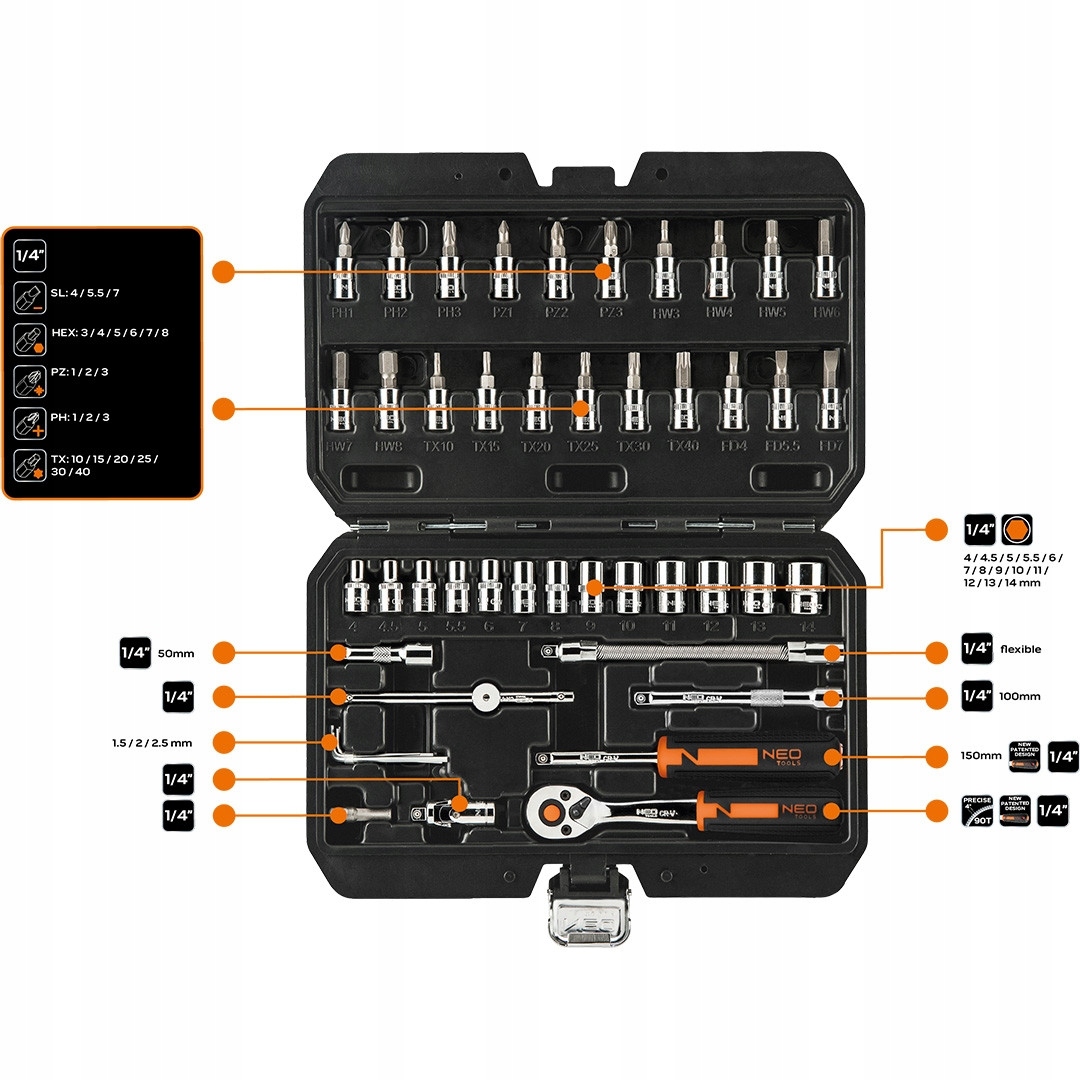 NEO 10-004 НАБІР ГАЙКОВИХ КЛЮЧІВ 1/4'' 46el CRV
