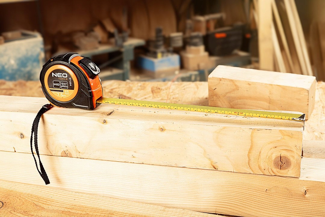 Neo 67-224 Сталева розгорнута міра 7,5 м х 25 мм, замок автомобіля, дві кнопки