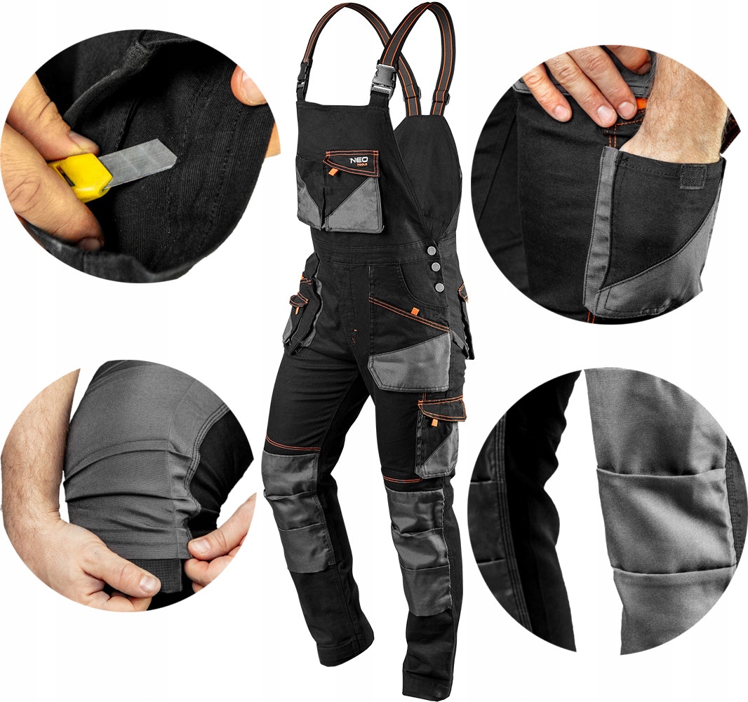 HD Slim Neo робочі садівники - це зручні штани з брекетами. Виготовлений з високоякісного матеріалу з додаванням еластану, а найбільш вразливими місцями були зміцнені Оксфордською тканиною. Потрійні шви прокололи, збільшуючи міцність зв'язку. Багатофункціональні кишені зберігають усі необхідні інструменти. На колінах у них є кишені для поживних речовин. Позначення CE є гарантією безпеки, доводить, що продукт відповідає всім вимогам ЄС. Бренд NEO відповідає очікуванням професіоналів.
