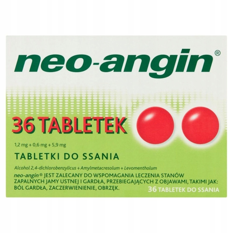 Нео-Ангін - таблетки для розсмоктування, які мають антибактеріальну та протигрибкову дію завдяки наявності 2,4-дихлорбензилового спирту та амілметакрезолу. Левоментол діє місцево, охолоджуючи і м'яко знеболюючи слизові оболонки. Продукт ефективний при лікуванні запалення горла та ротової порожнини, яке супроводжується болем, почервонінням і набряком.