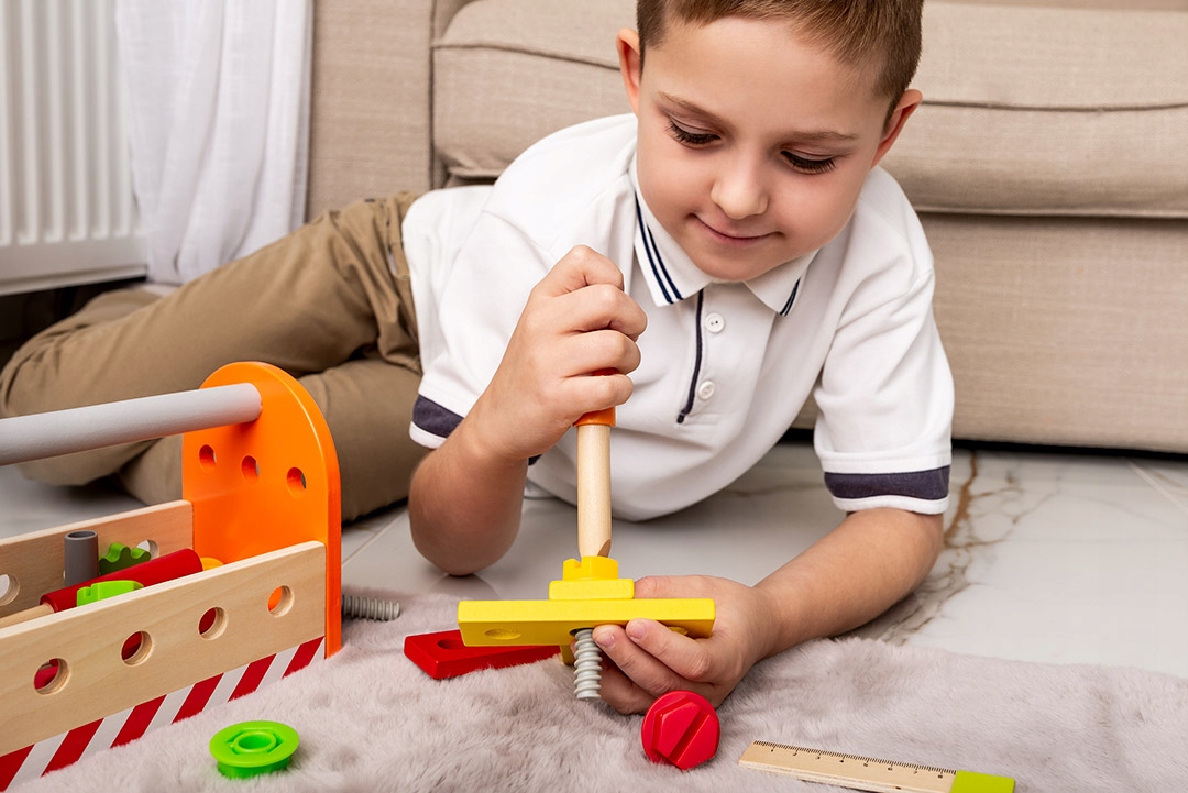 У коробці ви знайдете інструменти та аксесуари, такі як: ріжковий ключ, пилка, стрічки, молоток, викрутка, кутник, заклепки, шестерні, гвинти та гайки . Вони дають можливість дітям пограти в маленьких майстрів, подумати і перевірити корисність тих чи інших елементів. Іграшка призначена для дітей старше 3 років. Бренд NEO розвиває пристрасті!