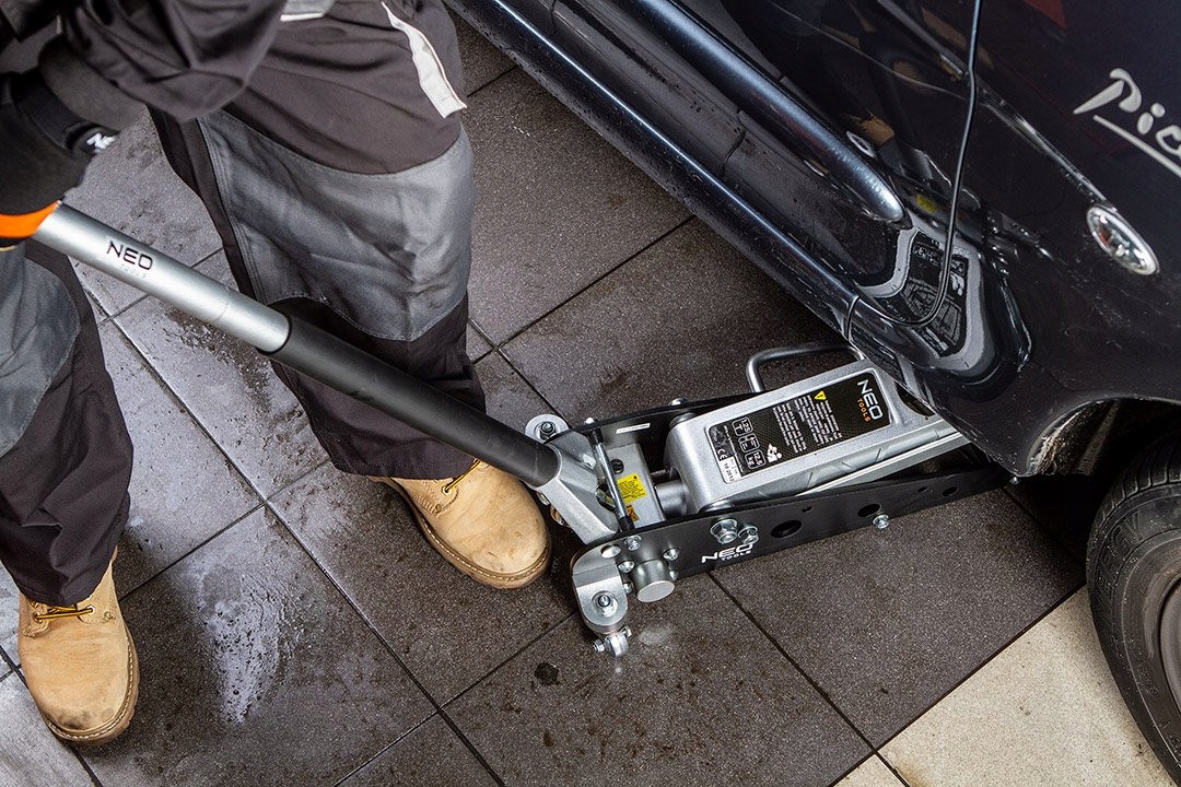 Гідравлічний підйомник NEO (ref. 11-730), жабчастого типу, виготовлений з високоякісного алюмінію, що забезпечує стійкість до корозії. Має 2 поворотні сталеві колеса і ролик. Дальність підйому до 355 мм, максимальна вага 1,5 т. Підйомник характеризується компактною конструкцією і малою вагою - 15,3 кг, що значно полегшує транспортування. Завдяки низькому профілю підходить для підйому спортивних автомобілів. Відповідність європейським стандартам безпеки забезпечується сертифікатом CE. Сертифікат TÜV Rheinland гарантує високу якість і надійність продукції. Торгова марка NEO відповідає очікуванням професіоналів.