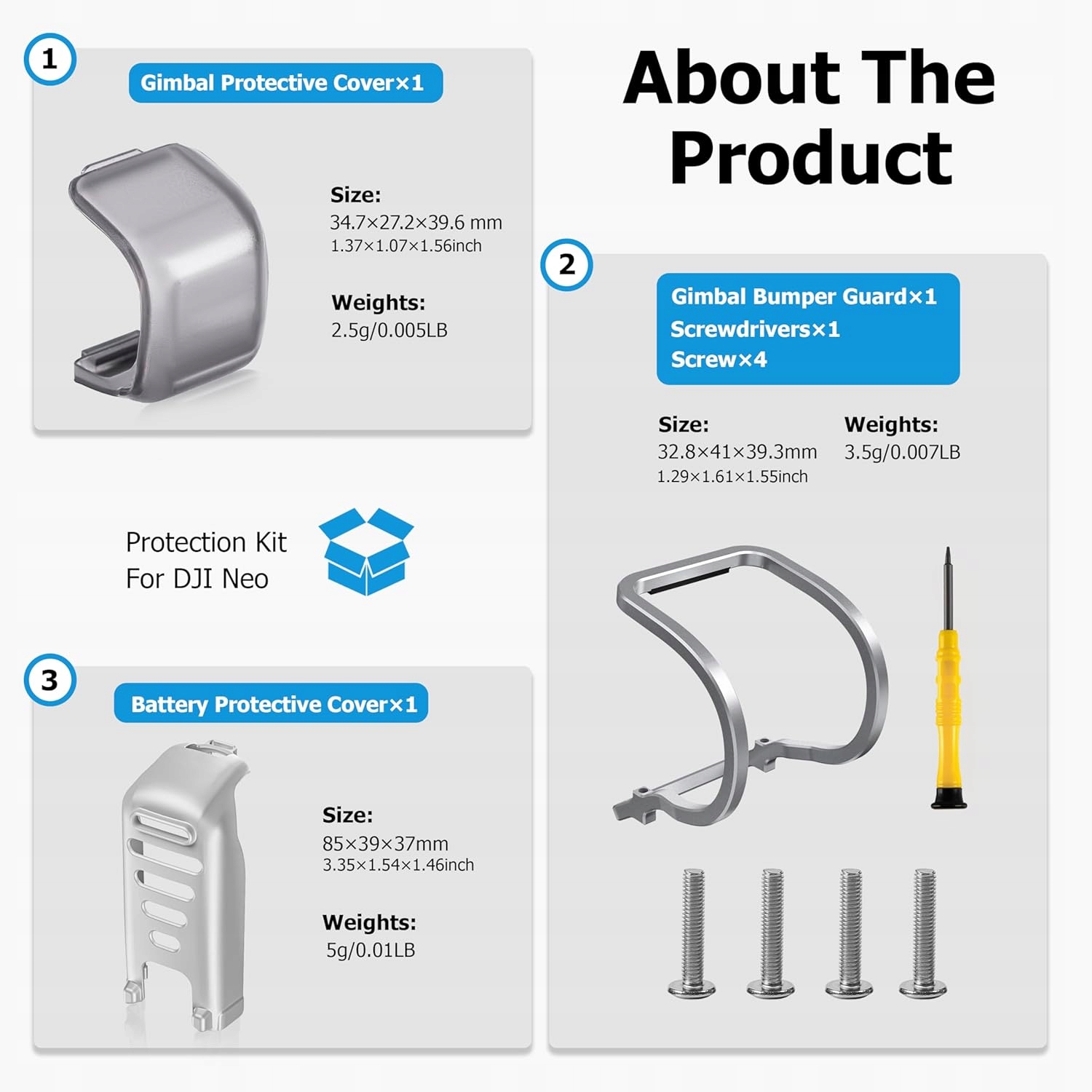 NEO Accessories Set: Neo Gimbal Bumper Guard + Battery Protector Landing Gear + Gimbal Cover: It provides more comprehensive protection and improves the impressions of flying