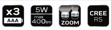 NEO HEAD LAMP Налобний ліхтар 400 лм 5W zoom CREE R5 батарейки 3xAAA 99