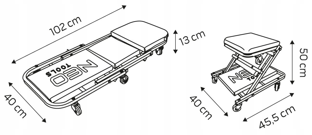 - Продукція торгової марки NEO забезпечує ефективну роботу під автомобілем, полегшує виконання завдань у майстерні та призначена для людей, які працюють на автомобілях.