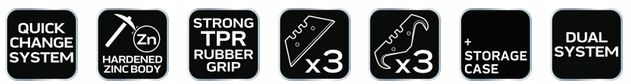 Металевий корпус із сплаву цинку підвищує довговічність інструменту, а рукоятка, покрита ABS + TPR, забезпечує протиковзкі властивості.