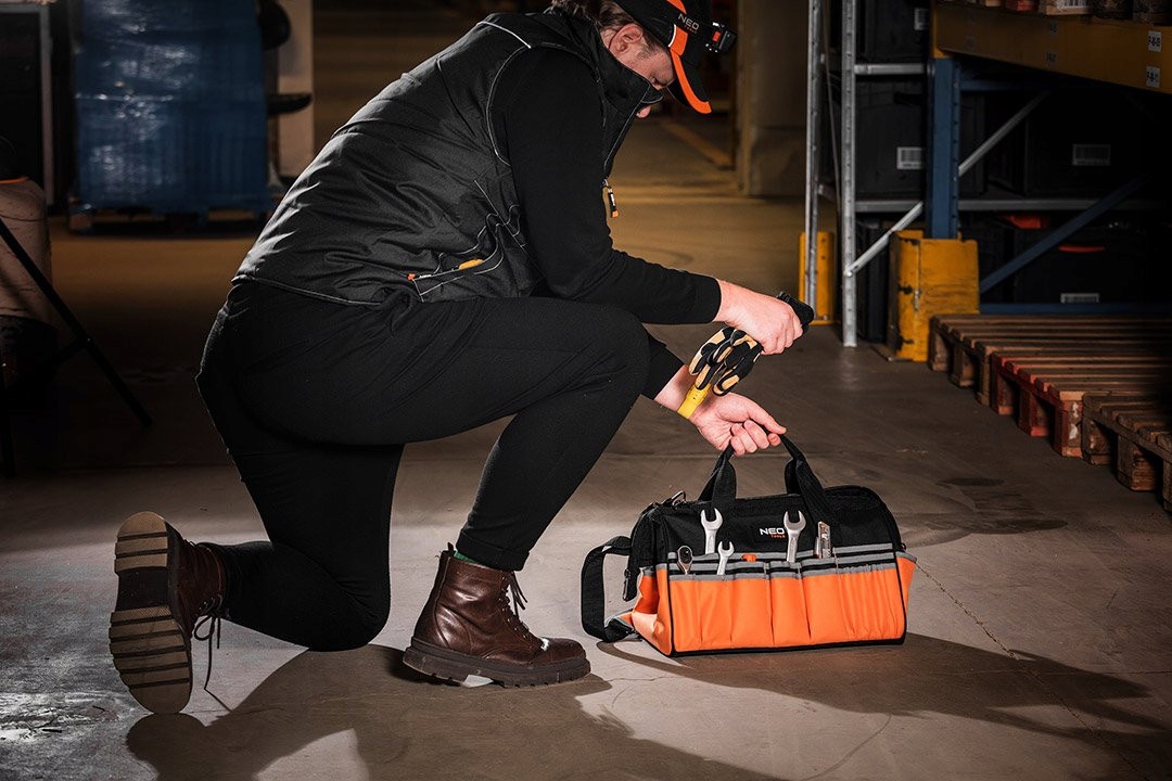 Сумка для інструментів NEO TOOLS має міцні блискавки та призначена для використання протягом багатьох років.