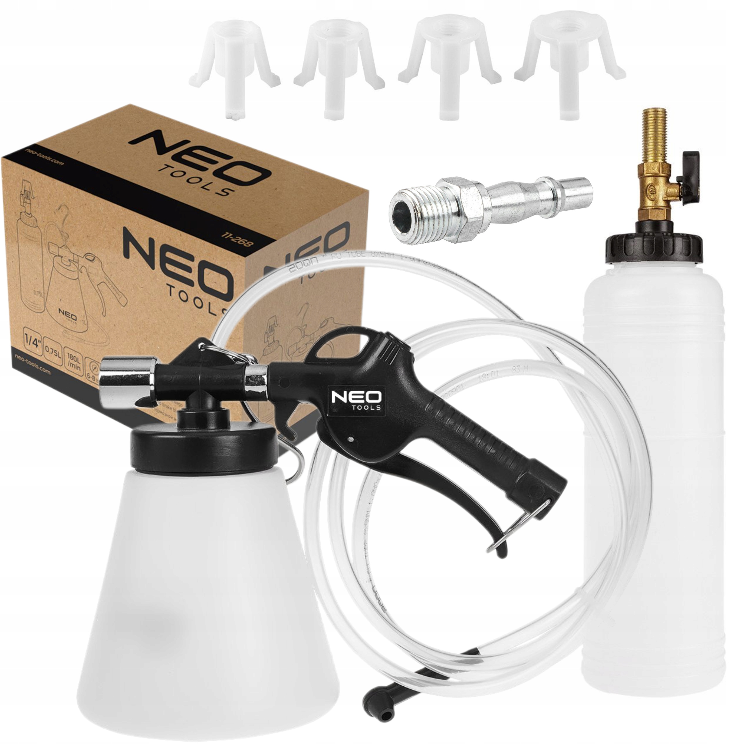 ⭐ встановлено для заміни гальмівної рідини та вентиляції гальм 11-268 Нео інструментів -це дуже корисний інструмент, який дозволяє самостійно замінити гальмівну рідину. Цей продукт, виготовлений з міцного пластику, був розроблений для використання в умовах майстерні.