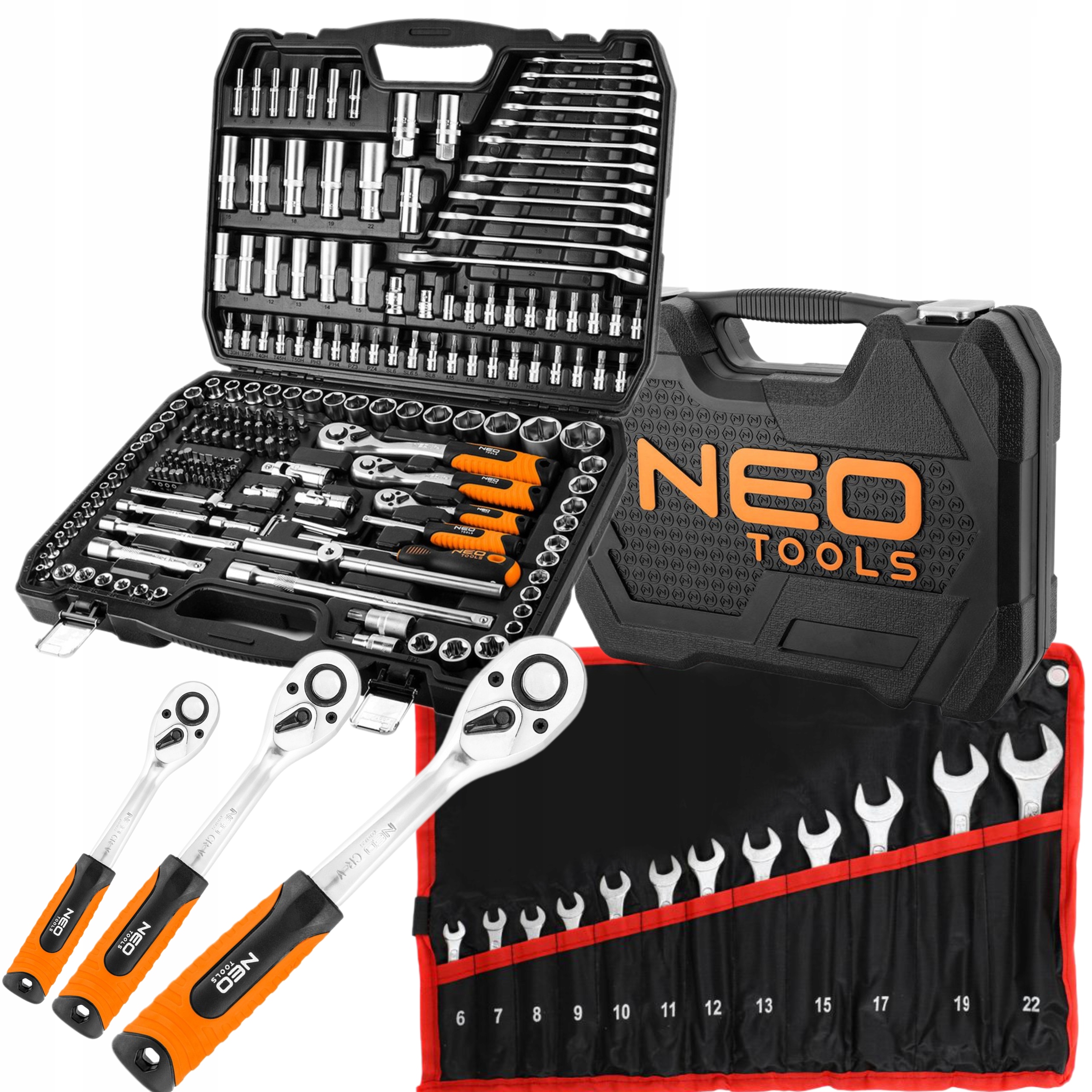 NEO НАБІР ГАЙКОВИХ КЛЮЧІВ 216 шт. 10-216 3 ТРІСКАВКИ + ГАЙКОВІ КЛЮЧІ 6-22