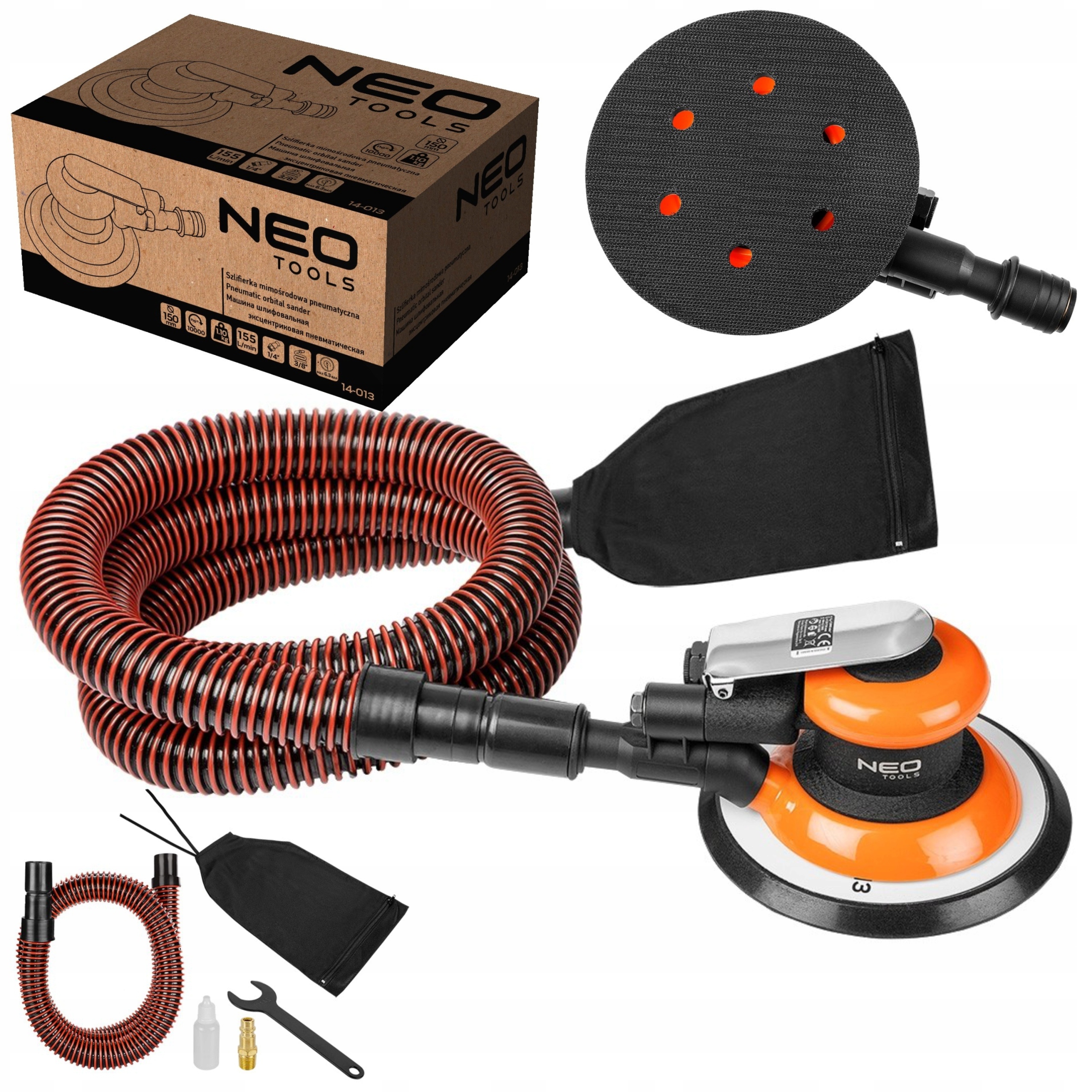 Пневматична ексцентрикова шліфувальна машина 150 мм, вакуумне пиловідведення 14-013 NEO - це інструмент, який використовує коливальний і обертовий рух, що призводить до економії часу та досягнення швидших результатів роботи. М'ясорубка має можливість працювати зі швидкістю 12 000 обертів на хвилину. Оснащений дисками діаметром 125/150, він дозволяє виконувати багато завдань у майстерні.