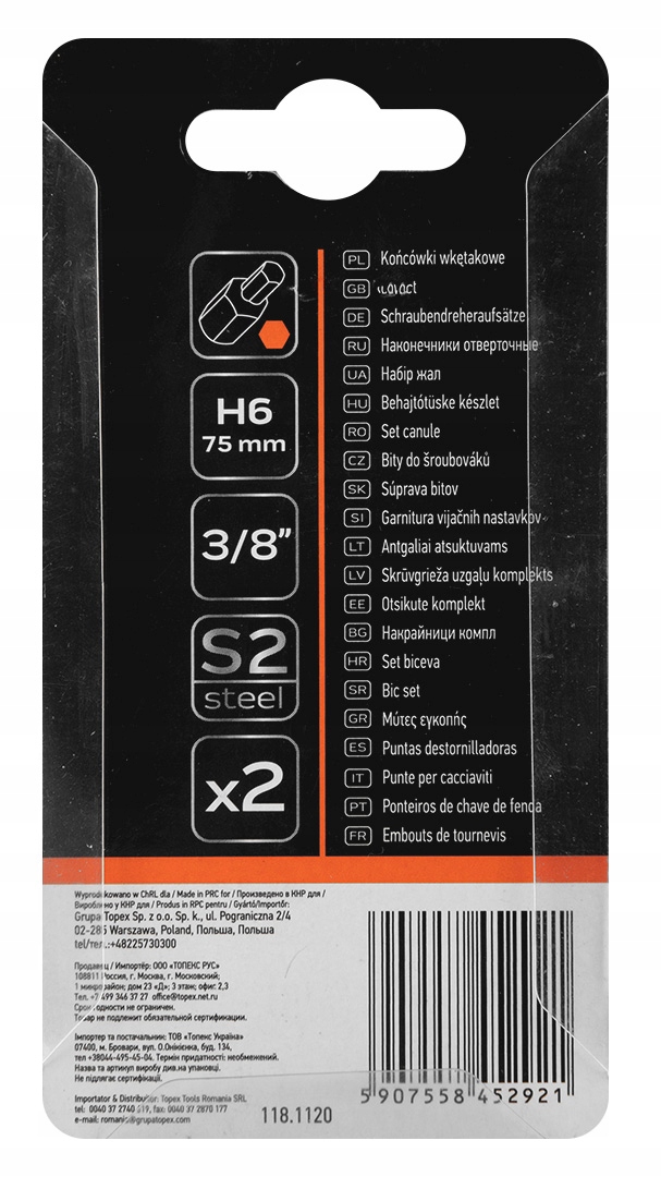 Наконечник HEX 6 x 75 мм, S2 x 2 шт.