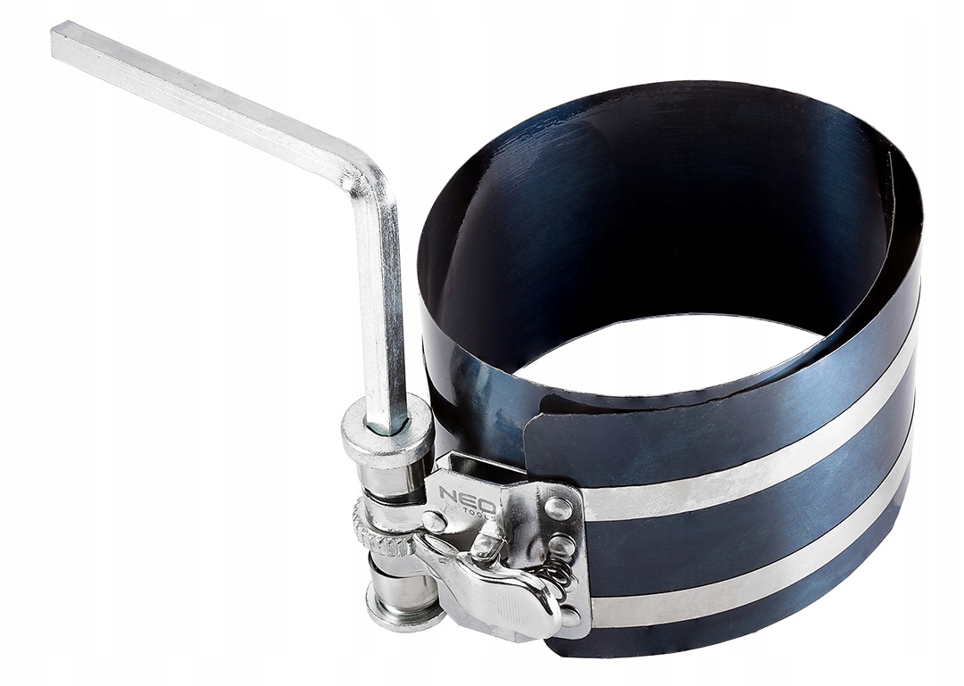 Обтискач кільця NEO 50–125 мм 11-250 — це інструмент із діапазоном підтримуваних діаметрів від 50 до 125 мм. Характеризується довжиною 75 мм. Обжимник виготовлений з міцної легованої сталі SK5, що дозволяє поршневим кільцям зберігати правильну форму. Затискний механізм, в свою чергу, виготовлений з високоякісної нержавіючої сталі 301 з точною черв'ячною передачею. Інструмент марки NEO допомагає встановити поршень в корпус двигуна. Це буде безцінним в автосервісах.