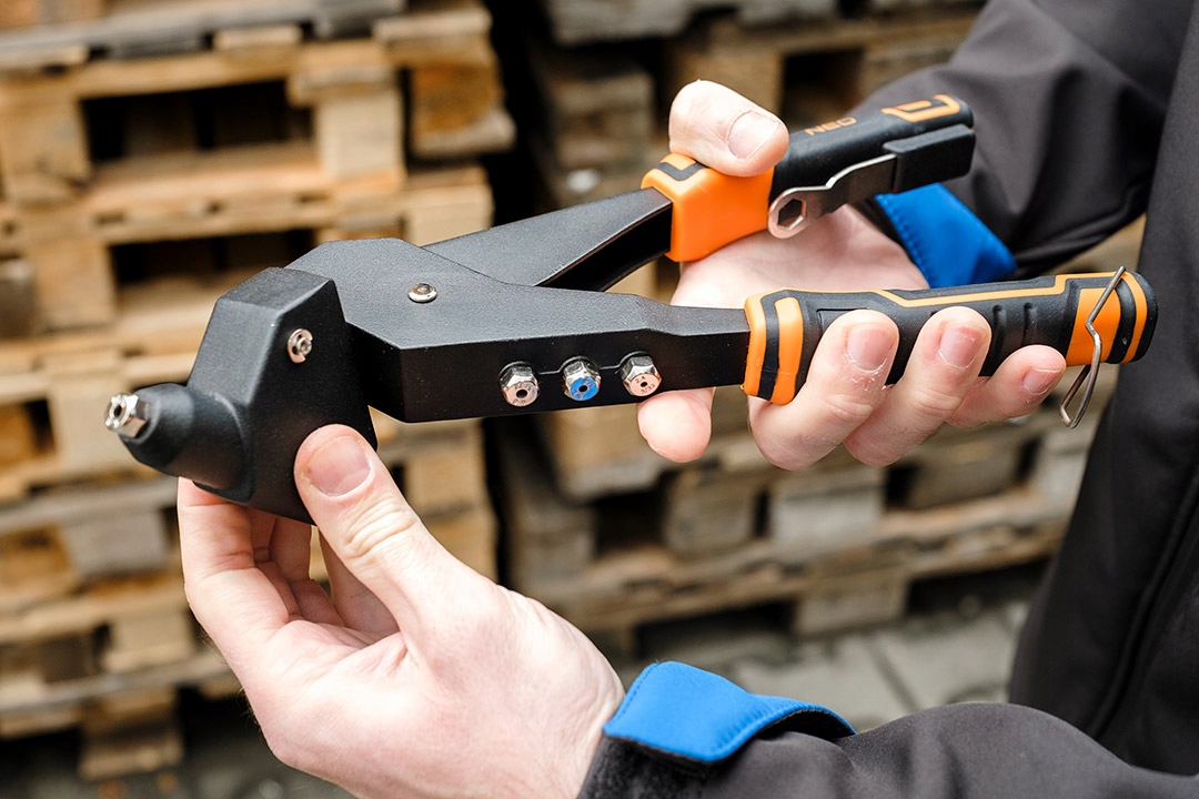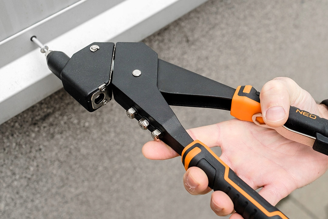 NEO NITOWNICA RĘCZNA NITÓW STALOWYCH ALUMINIOWYCH RUCHOMA GŁOWICA 2,4-4,8MM + NEO TOOLS NITY ZRYWALNE ALUMINIOWE, 400 SZTUK