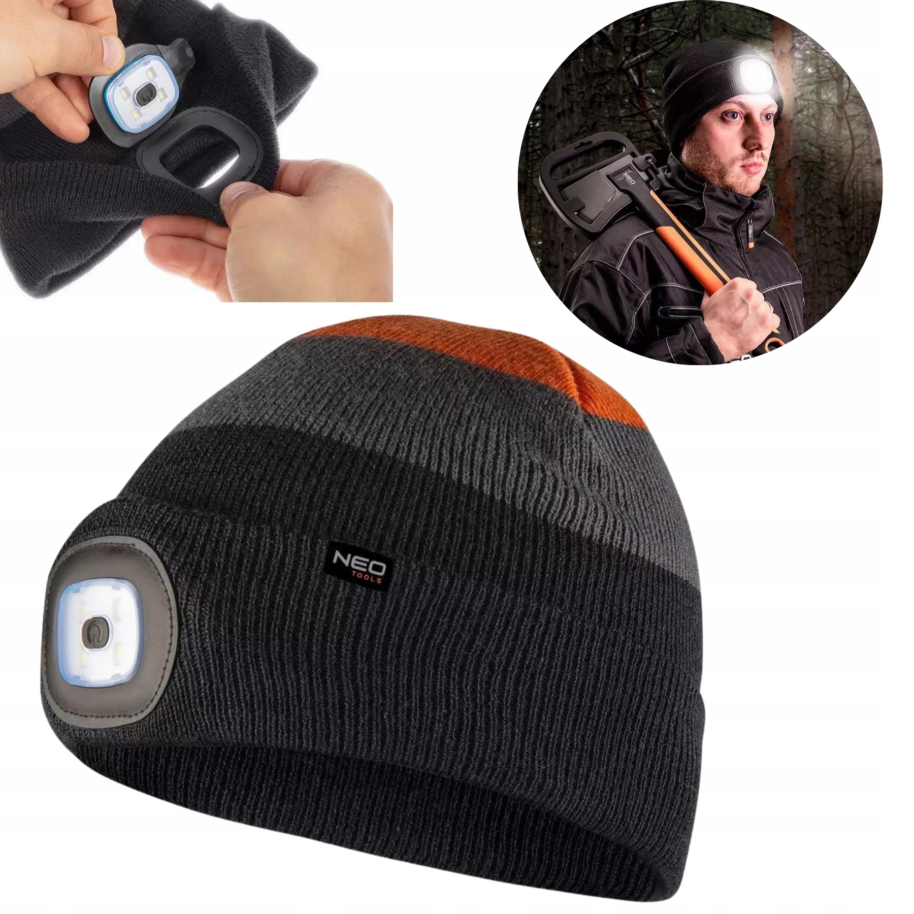 NEO TOOLS CZAPKA ZIOMOWA Z LATARKĄ CZOŁOWĄ LED USB | LATARKA CZOŁOWA NEO