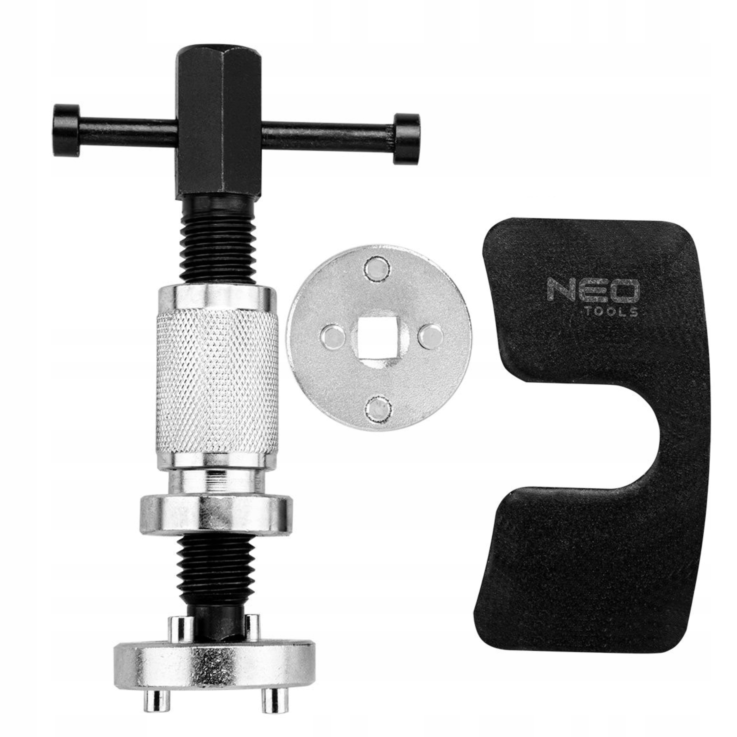 Сепаратор гальмівного супорта NEO з правою різьбою є необхідним обладнанням для кожної професійної майстерні та добре обладнаного домашнього гаража. Сприяє швидкій заміні гальмівних колодок. Цей інструмент використовується для рівномірного розширення поршнів під час заміни гальмівних колодок. Завдяки цьому не потрібно докладати зусиль, оскільки поршні легко розсуваються від 25 до 60 мм. У набір входить: ручка, двосторонній адаптер для задніх затискачів і упор.