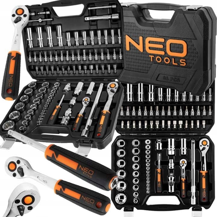 NEO TOOLS Торцеві ключі 1/4, 1/2, 86 ел. CrV Набір Інструментів Валіза