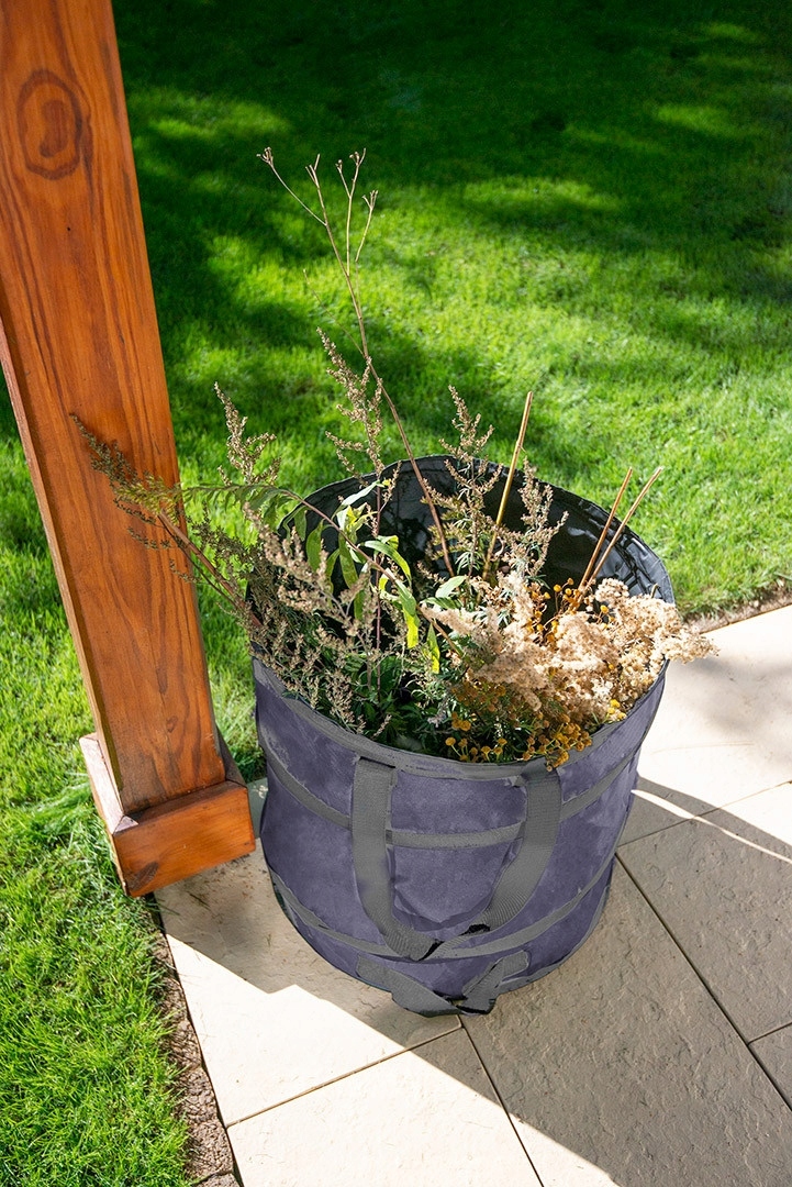 Садовий мішок 85 л, довгі ручки, складний, 180 г/м2 15-960 NEO - багаторазова ємність ємністю 85 л, необхідна в саду та на присадибній ділянці. Оснащений міцними довгими ручками для зручності перенесення та додатково посиленими з боків - також для легшого складання. Сумка має діаметр 46 см і висоту 53 см. Виготовлена з міцного матеріалу вагою 180 г/м2. Він дуже стійкий до стирання та проколів.