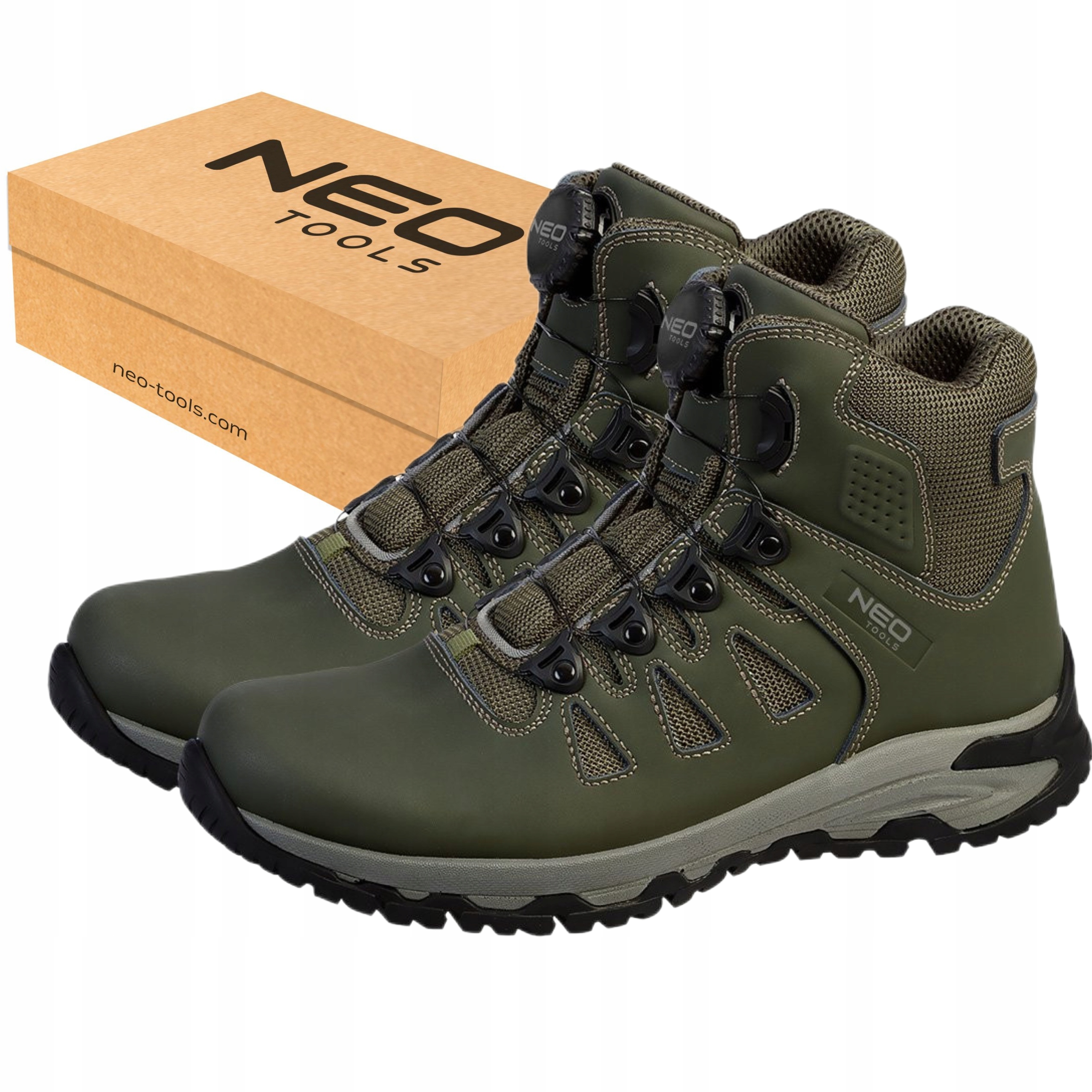 Крім того, вставка з піни HI-POLY і вбудована п’ята забезпечують поглинання енергії в п’ятковій частині, підвищуючи комфорт використовувати. Взуття NEO TOOLS має антистатичні властивості та стійке до масел, бензину та інших органічних розчинників. Вони рекомендовані для поїздок у ліс, гірських походів, а також для робіт на відкритому повітрі та в приміщенні, де не потрібен носок, але достатньо зчеплення з землею.