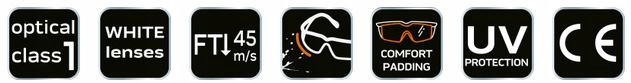 Захисні окуляри з пінопластовою вставкою, білі лінзи 97-520 фірми NEO — суцільні захисні скла, що належать до оптичного класу 1.