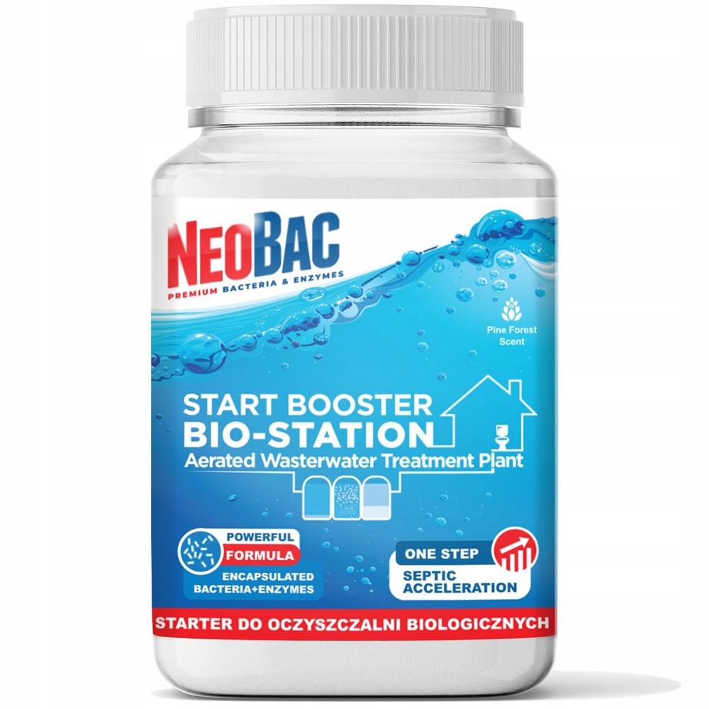 Вихідне середовище, що входить до складу препарату, багате поживними речовинами та стимулює розмноження корисних бактеріальних культур. Це, в свою чергу, багаторазово підвищує мікробіологічну активність відразу після використання препарату. Крім того, ліполітичні інгредієнти, присутні в NeoBac BIO-STATION START BOOSTER, сприяють зменшенню жирів, що особливо важливо у випадку очисних споруд із тенденцією до жирності.