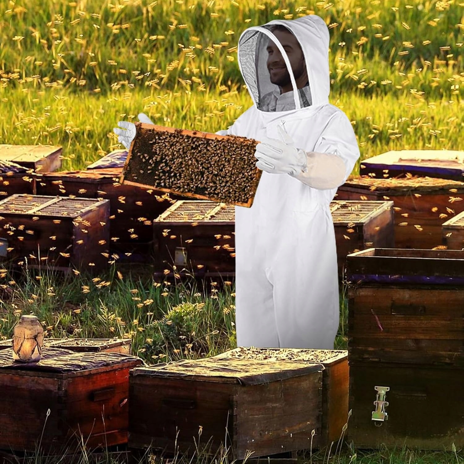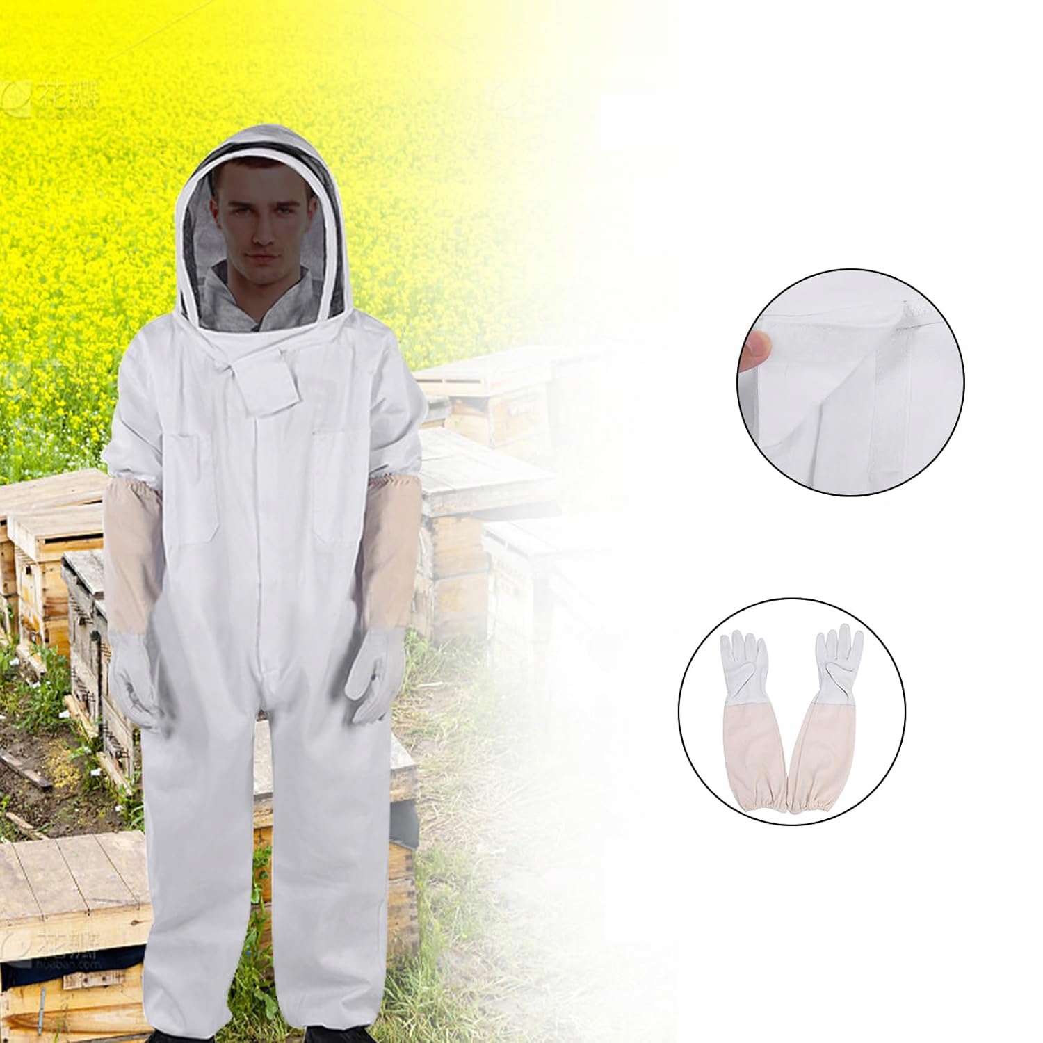 🐝🐝 комбінезон повнометражного бджолиця - комбінезони дихаючого бджоляра з рукавичками та кришкою нитків вгору, зап'ястя, талії, талії та гнучких кубиків, щоб гарантувати, що бджоли не можуть увійти, можуть покрити все тіло, тому бджолярі не потрібно турбуватися про інструменти під час використання інструментів бджіл та бій.