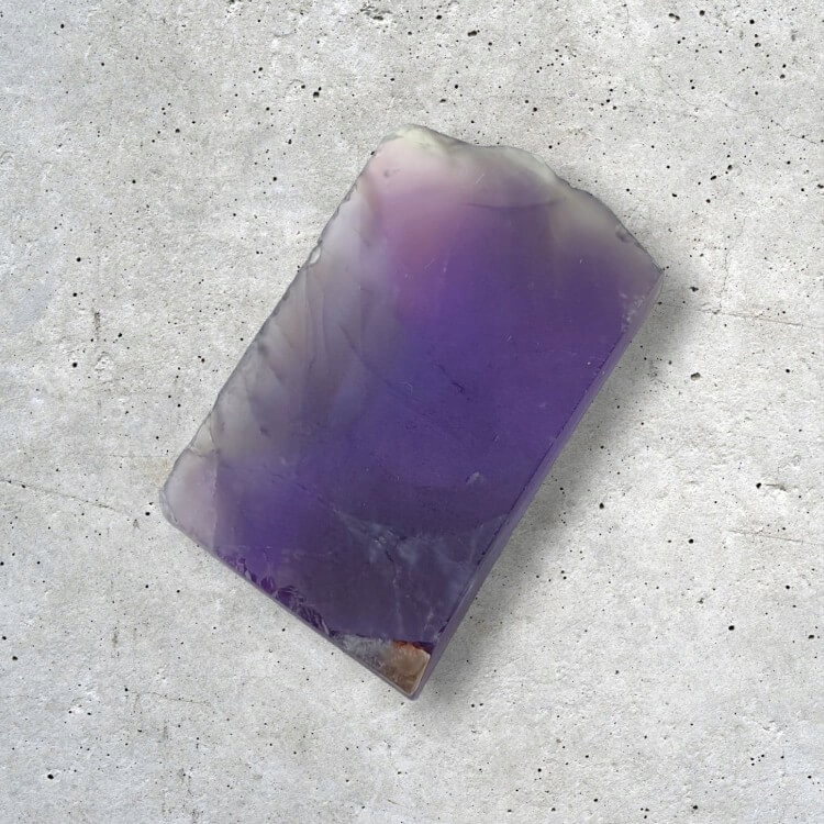Камінь, нарізаний на скибочки, нешліфований. Сплющений природний мінерал неправильної форми, який можна використовувати в цікавих ювелірних виробах.