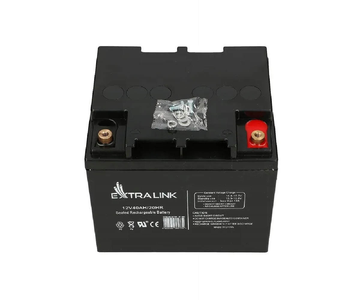 Extralink EX.9779 – це акумулятор AGM, який завдяки своїм невеликим розмірам, безобслуговуваній роботі та терміном служби до 5 років є чудовою альтернативою традиційним кислотні батареї. Його можна використовувати в джерелах живлення ДБЖ, системах сигналізації, великих іграшках і портативних пристроях. Його ємність 40 Ач, номінальна напруга 12 В.