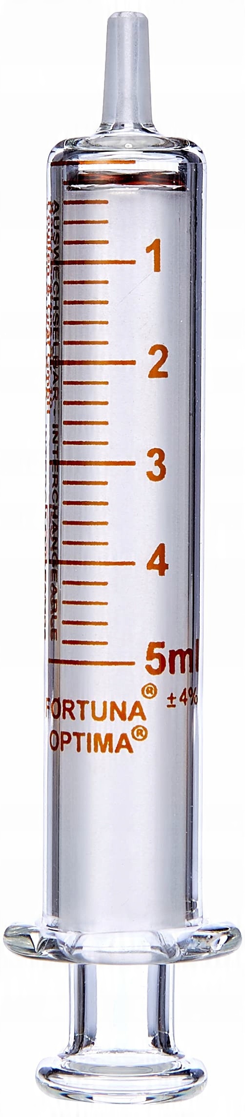 з боросилікатного скла, з міцною коричневою окалиною, змінний поршень, стерилізується при 121°C, сертифікат відповідності KB, центричний конус. ||Технічні дані:||Колір прозорий (прозорий), ємність 10 мл, автоклавна стерилізація так, градуювання 0 2 мл, матеріал шприца боросилікатне скло, матеріал конуса боросилікатне скло