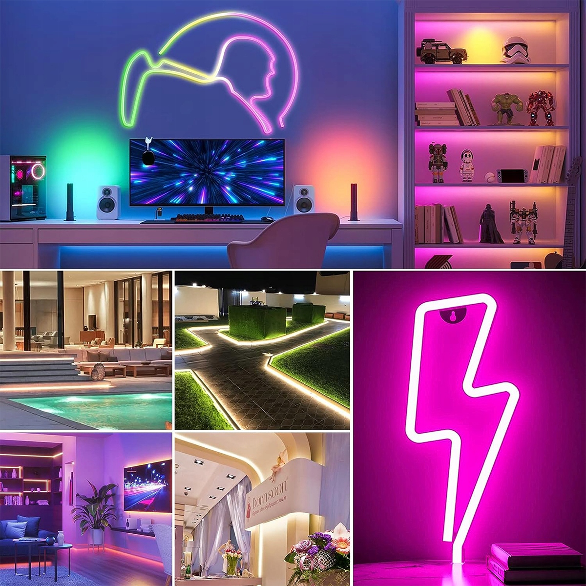 ⭐ безпечно використовувати】, що складається з ПВХ та силікону, працює з низькою напругою постійного струму 12 В твердого та не нагрівається навіть після тривалого часу використання. Завдяки цьому він відчутний як для дітей, так і для дорослих. 4 Що буде працювати краще як декоративне освітлення в садах, будинках, будинках, кухнях, спальнях, барів, офісних будівлях, на вечірках, в комп'ютерних іграх, зовні та в багатьох інших місцях.