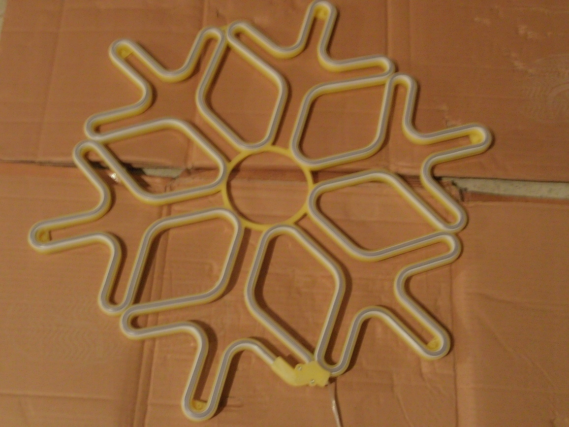 РІЗДВОВА СНІЖИНКА СНІЖИНКА 60 СМ З НЕОНОВОГО СВІТОДІОДНОГО ШЛАНГУ ТЕПЛОГО БІЛОГО КОЛЬОРУ - ОДНОБОРНА, АЛЕ ІНША СТОРОНА СВІТИТЬ ГІБШЕ, БО ВОНА ЗА БІЛИМ ПЛАСТИКОМ.