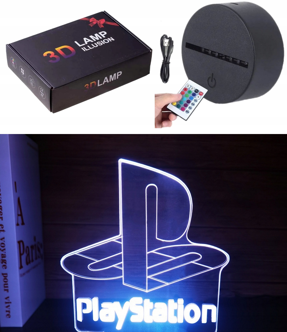Світлодіодна акрилова нічна лампа RGB складається з прозорої акрилової панелі з логотипом PlayStation і вбудованих світлодіодів RGB. Ці діоди дозволяють лампі випромінювати різнікольори світла. За допомогою кнопкиабо пульта дистанційного керування користувач може легко вибрати свої улюблені кольори світла або використовувати режими, які автоматично змінюють кольори, дозволяючи створювати різноманітні світлові ефекти.