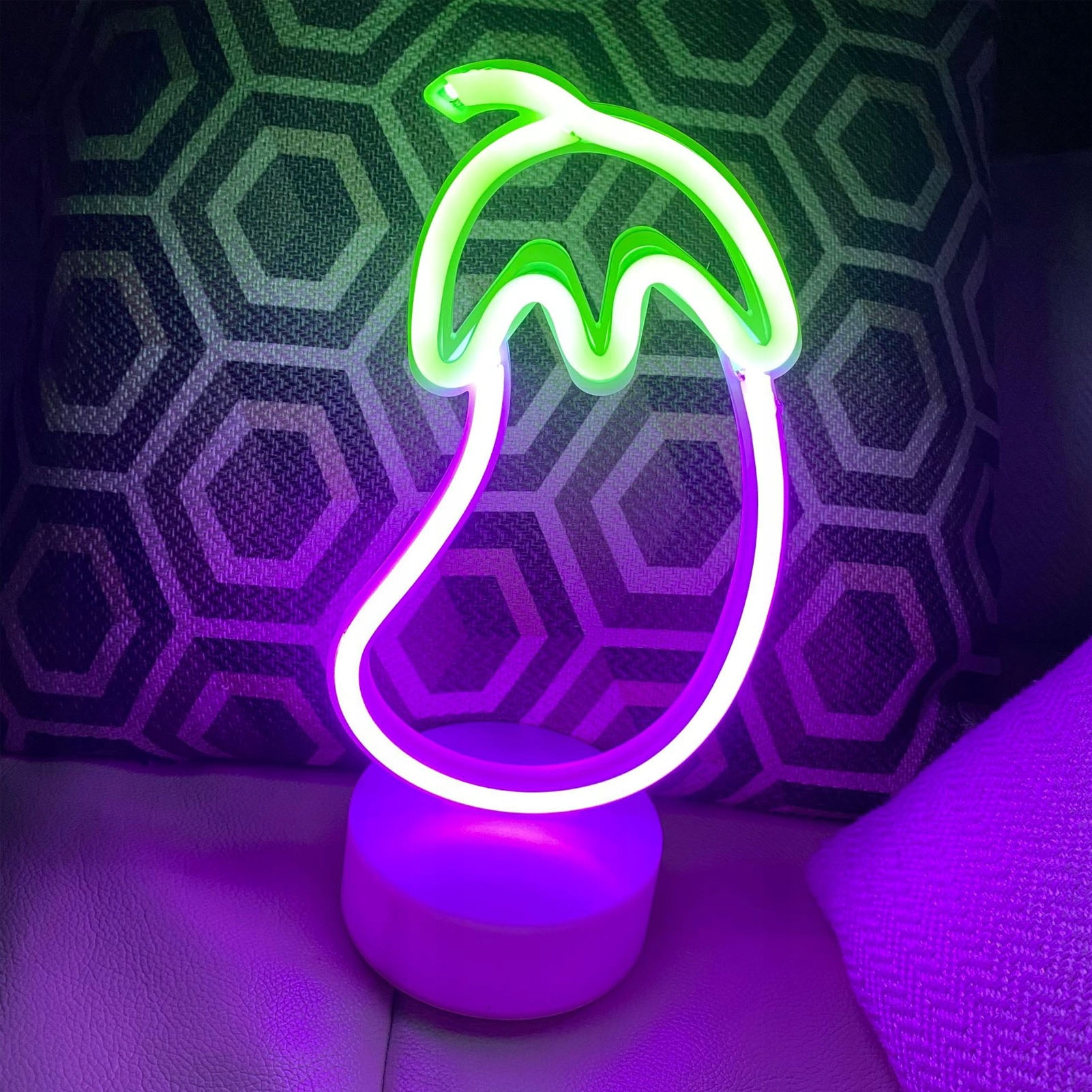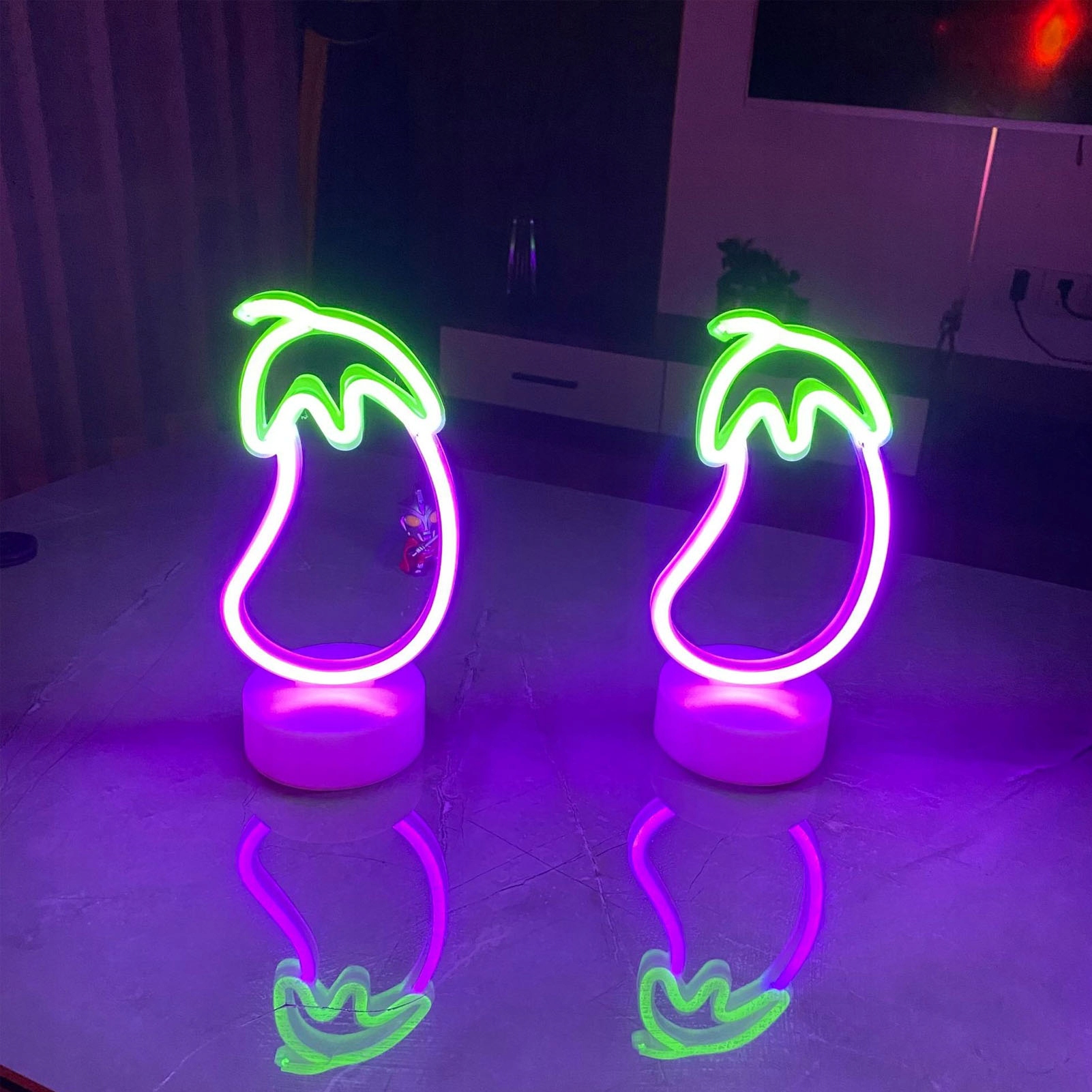 2. Яскравий: неонова вивіска у формі баклажана ідеально підходить для додавання кольору та яскравості будь-якому простору та є чудовим доповненням до освітлення вашої кімнати.