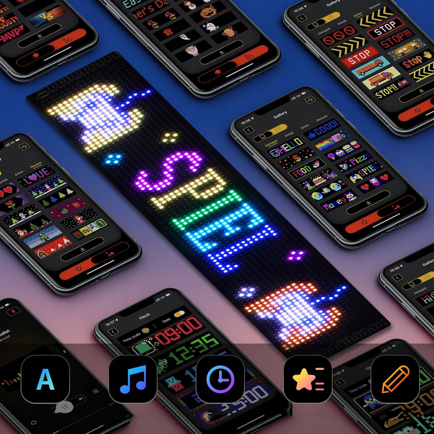 - можна керувати за допомогою інтелектуальної програми, після завантаження програми, увімкніть Bluetooth, ви можете легко підключитися до світлодіодного екрану.