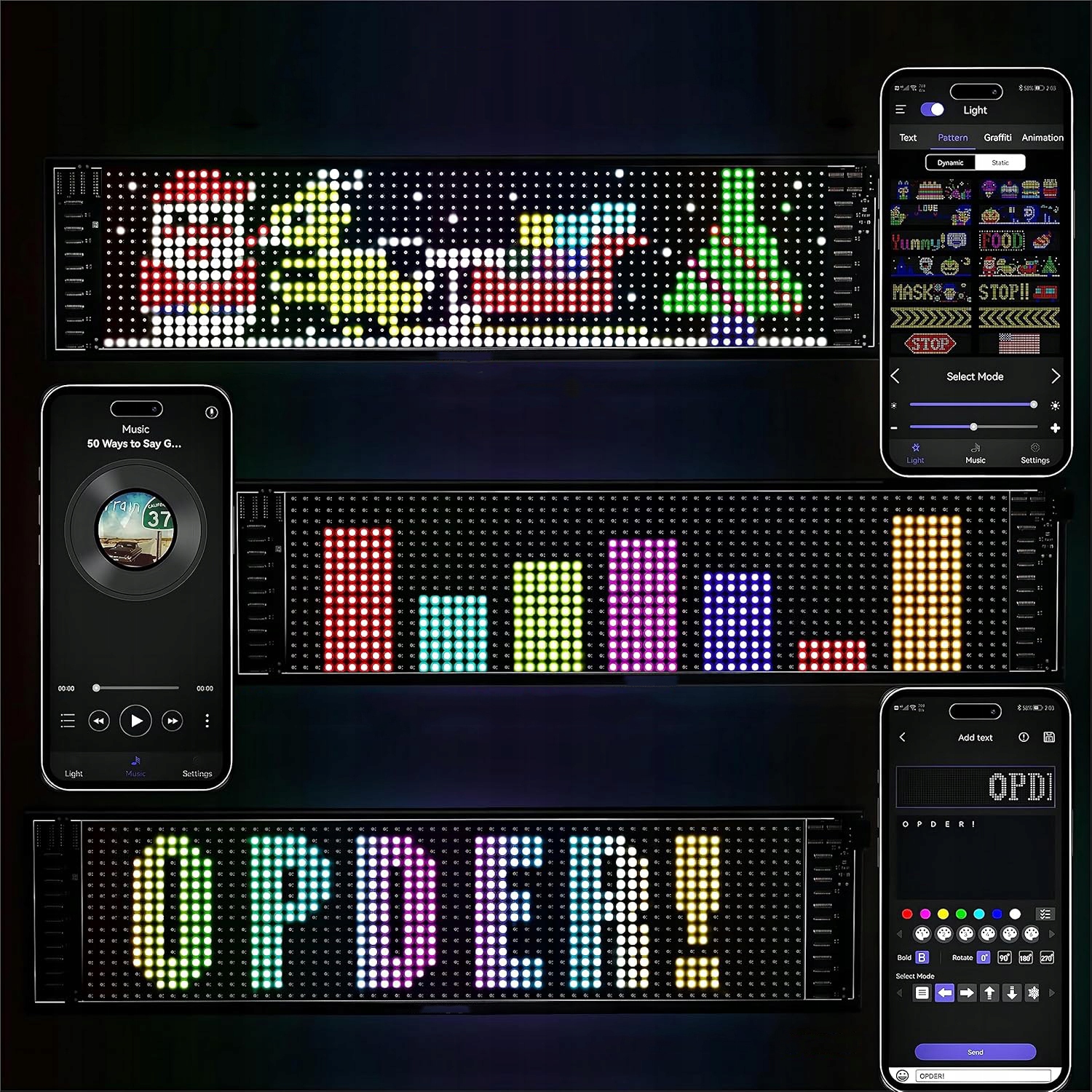 🚗🚗🚗【 Інтелектуальне управління застосуванням】 Застосування дуже простий у встановленні та експлуатації, а також дуже інтелектуальне; Підключіться через Bluetooth, завантажте програму, а потім увімкніть Bluetooth, щоб легко підключитися до світлодіодної дошки; За допомогою музичного режиму, коли ви перебуваєте в музичному режимі, Digital Craint Light танцюватиме під ритм музики