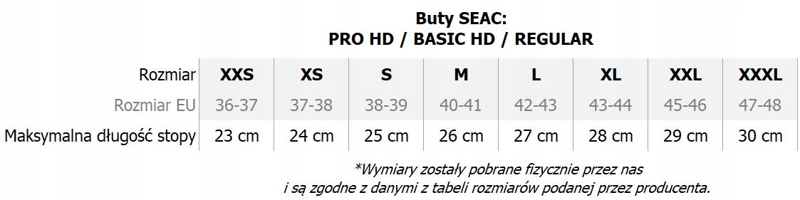 Таблиця розмірів взуття SEAC