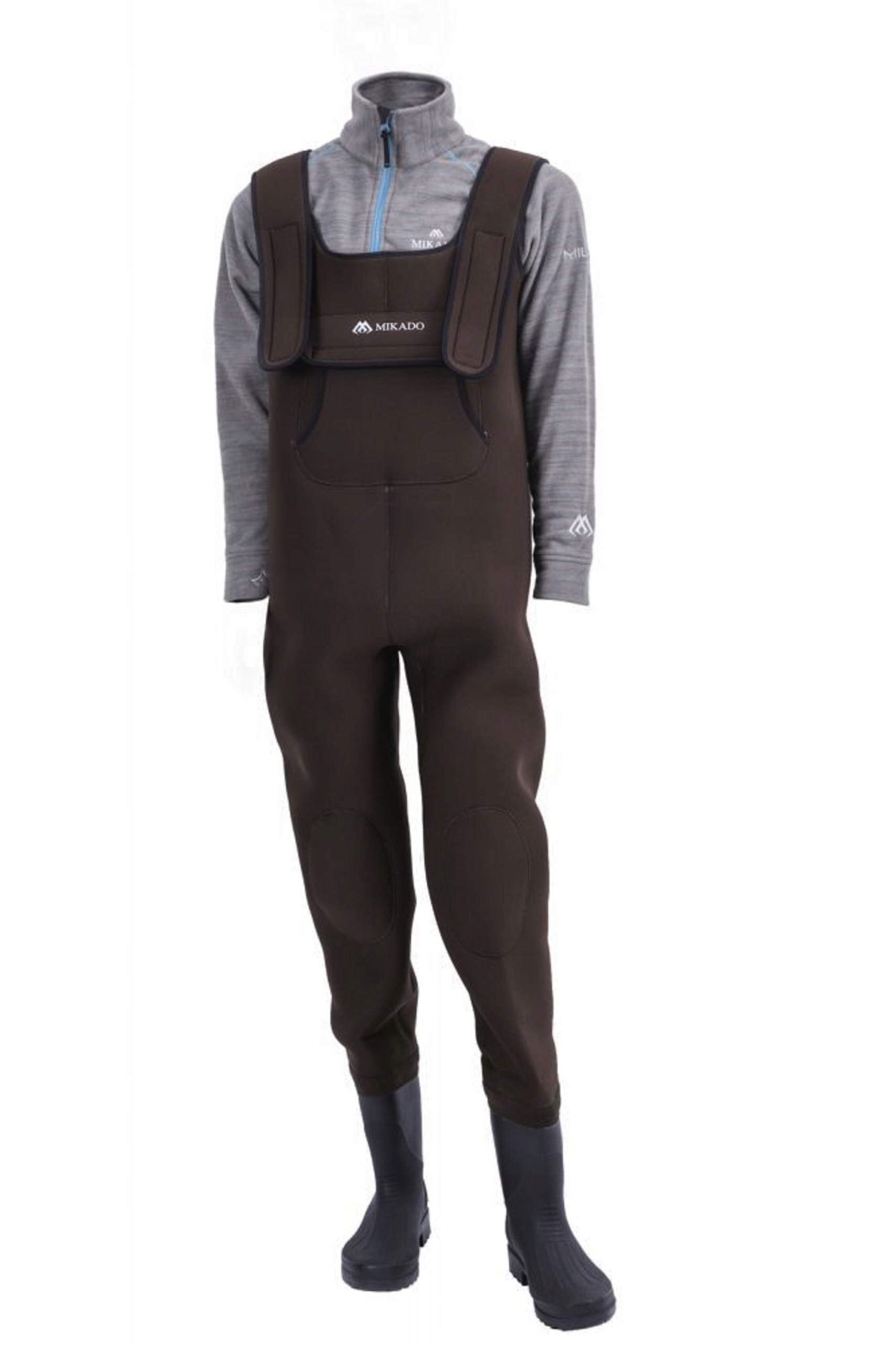 Тема продажів - штани Мікадо виготовлені з пінопласту, яка повністю захищає від води та забезпечує тепловий комфорт. Відповідний матеріал гарантує теплоізоляцію та підтримку потрібної температури навіть у крижаній воді. Гума -підошва з захисником забезпечує необхідну стабільність та стійкість до пошкодження. Чудовий вибір для всіх риболовців. На висоті грудей був поміщений зовнішній, закритий липучком, кишеню.