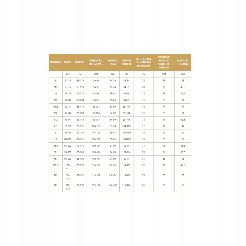 Крім «круглих» розмірів (наприклад, S, M, L) компанія Bare також підготувала «короткі» та «високі» версії, напр. розмір M у «короткій» версії, тобто MS призначений для людей, які підходять до діапазону розмірів M, але нижче. А також «високі» версії для вищих людей, позначені як MT.