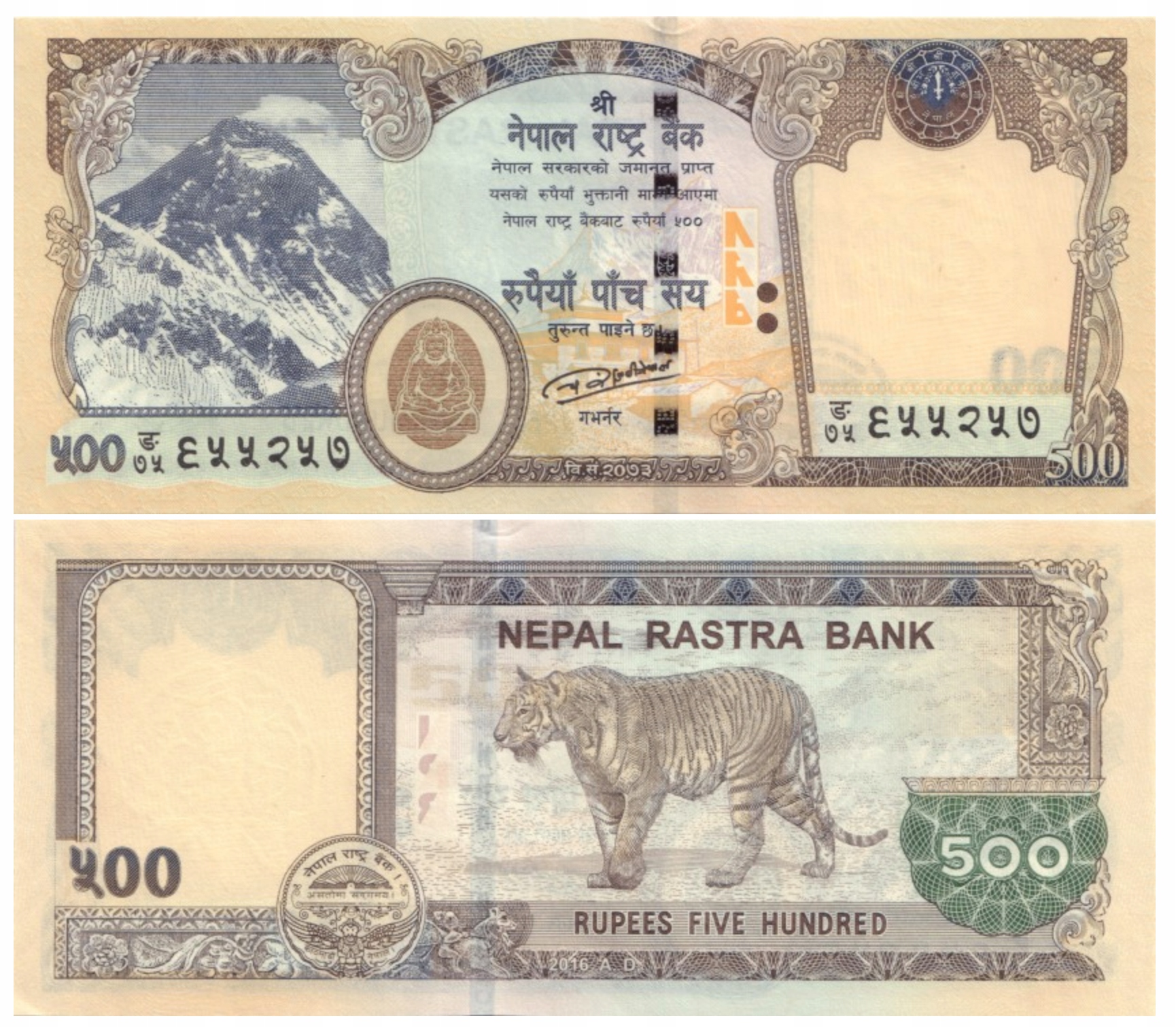 НЕПАЛ 500 РУПІЙ 2016 P-W 81a UNC Еверест Чомолунгма Тигр