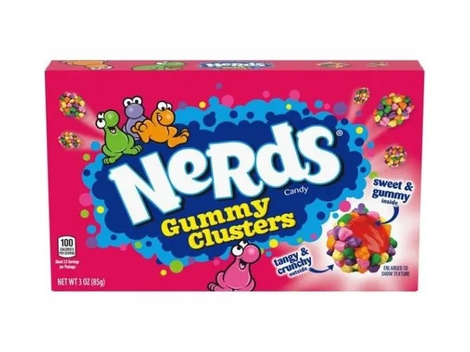 Зовні ви знайдете маленькі кольорові цукерки Nerds цукерки з насиченими фруктовими смаками, такими як полуниця, виноград, апельсин, зелене яблуко та кавун. Всередині ніжне фруктове желе, яке ідеально балансує кислотність зовнішнього шару. Ця унікальна структура робить кожен шматок хрустким і м’яким, перед яким важко встояти.