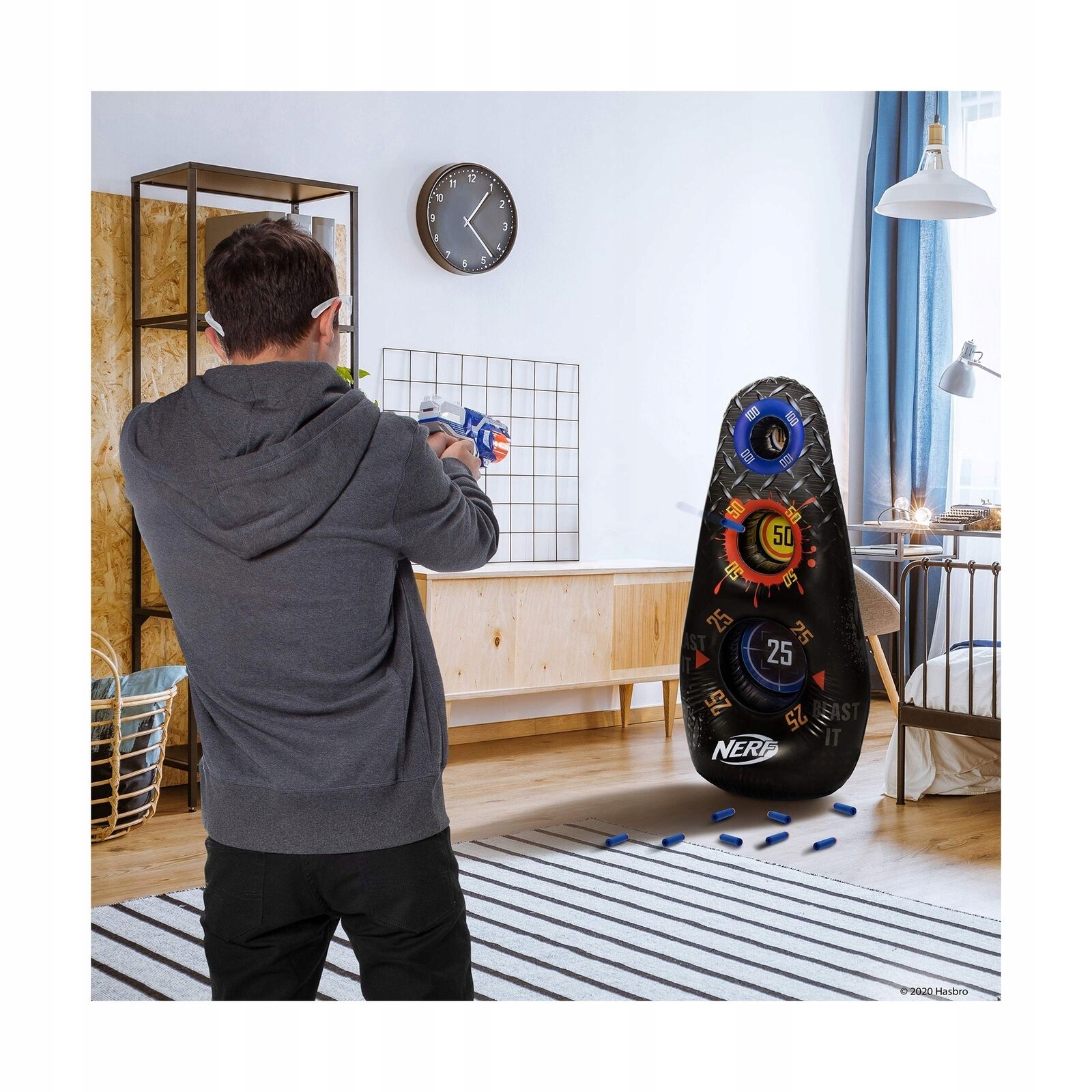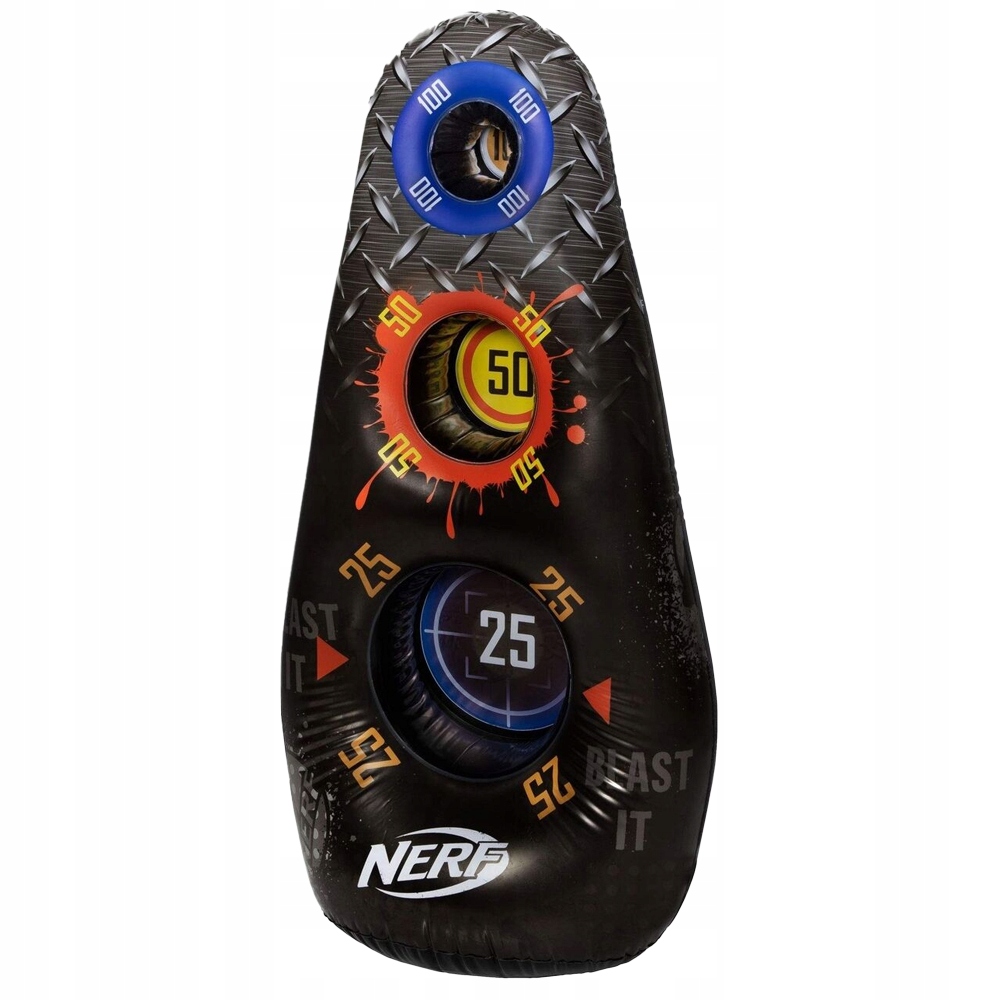 Зробіть Nerf ще веселішим! Надуйте мішень і перевірте свою влучність! Надувна мішень має висоту приблизно 1,2 м і має 3 мішені, які дозволять вам практикувати свою влучність, де завгодно. Надуйте свій дартс і тренуйтеся в точності з друзями вдома чи на природі.