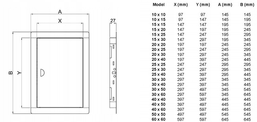 Ревізійні дверцята виготовлені з нержавіючої сталі товщиною 0,7 мм, що робить їх стабільними та стійкими до тріщин.