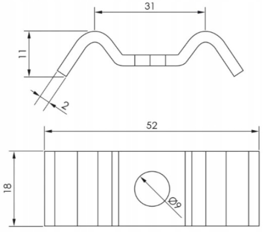 - мінімальна відстань між плоскими брусками / поперечними брусками (другий розмір у розмірі сітки): 22 мм - пресовані решітки або 24 мм - зварні решітки